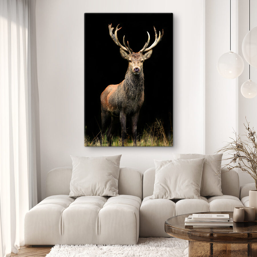 Möchten Sie Ihrem Raum einen Hauch von Waldzauber verleihen? Dann sehen Sie sich diesen Leinwanddruck eines majestätischen Hirsches in seinem natürlichen Lebensraum an. Es ist, als hätten Sie ein Stück Wald direkt in Ihrem Wohnzimmer! Das detailreiche Fell des Hirsches und die beeindruckende Präsenz seines Geweihs geben Ihnen das Gefühl, dass Sie ihn fast berühren könnten. Perfekt für Tierliebhaber oder alle, die sich ein Stück Wildnis ins Haus holen wollen. Dieses Stück eignet sich hervorragend, um Gespräche anzuregen oder sich einfach nur in der Schönheit der Natur zu verlieren, während Sie es sich auf Ihrer Couch bequem machen. Stellen Sie sich vor, Sie entspannen sich am Ende eines hektischen Tages, trinken eine Tasse Tee und betrachten diese heitere Kreatur – sie wird ein wenig Ruhe und Staunen in Ihr Leben bringen. Verleihen Sie Ihren Wänden mit diesem atemberaubenden, von der Natur inspirierten Kunstwerk etwas Persönlichkeit!