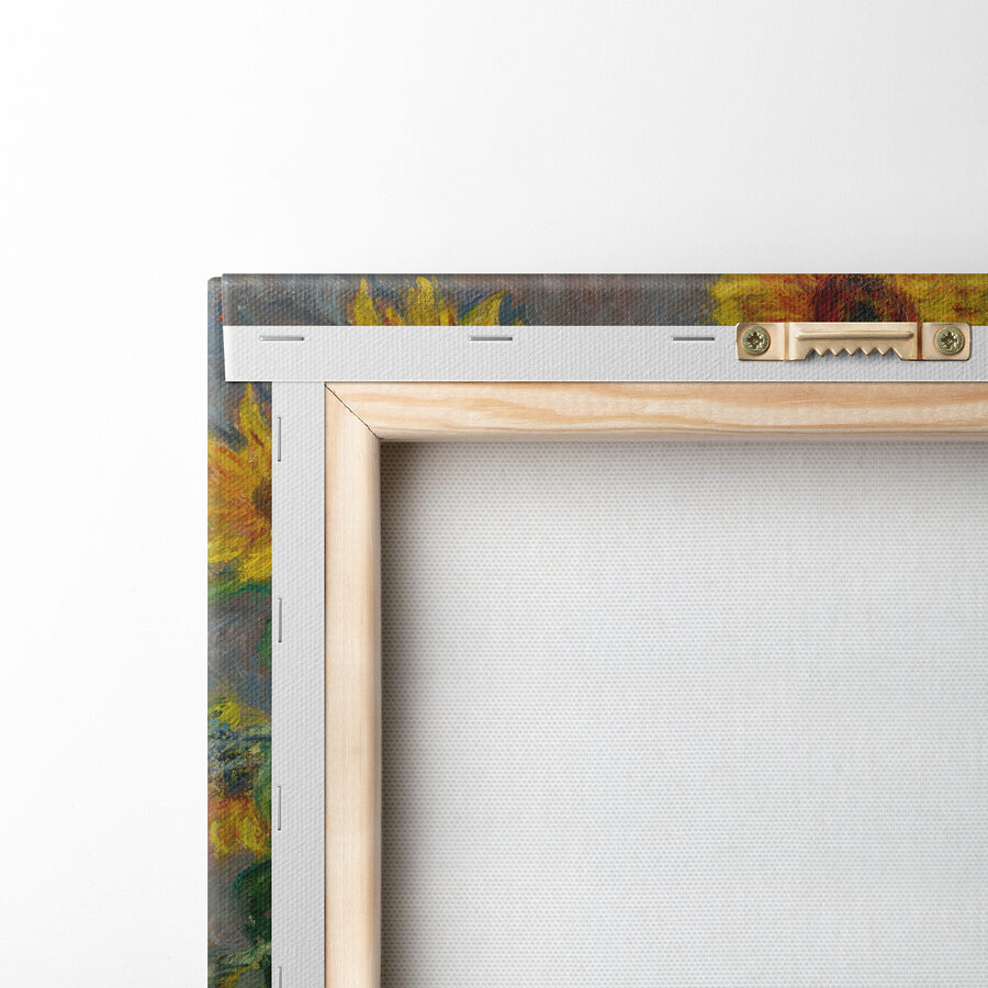 Dieser atemberaubende Leinwanddruck mit einem Strauß Sonnenblumen in einer Vase bringt frischen Wind in jeden Raum. Diese fröhlichen Blüten in leuchtendem Gelb und sattem Grün bringen einen Hauch von Natur ins Haus. Stellen Sie sich dieses Stück in einer gemütlichen Ecke vor, die zu warmen Gesprächen einlädt oder einfach einen Moment der Ruhe inmitten eines geschäftigen Tages bietet. Es ist, als hätte man das ganze Jahr über einen Hauch von Sommersonne. Dieses Kunstwerk eignet sich perfekt für alle, die Blumen lieben oder einen Farbtupfer setzen wollen, und wird mit Sicherheit Freude und vielleicht sogar das eine oder andere Lächeln hervorrufen. Wer würde sich nicht wohlfühlen, wenn solch reizende Gefährten seine Wände zieren?