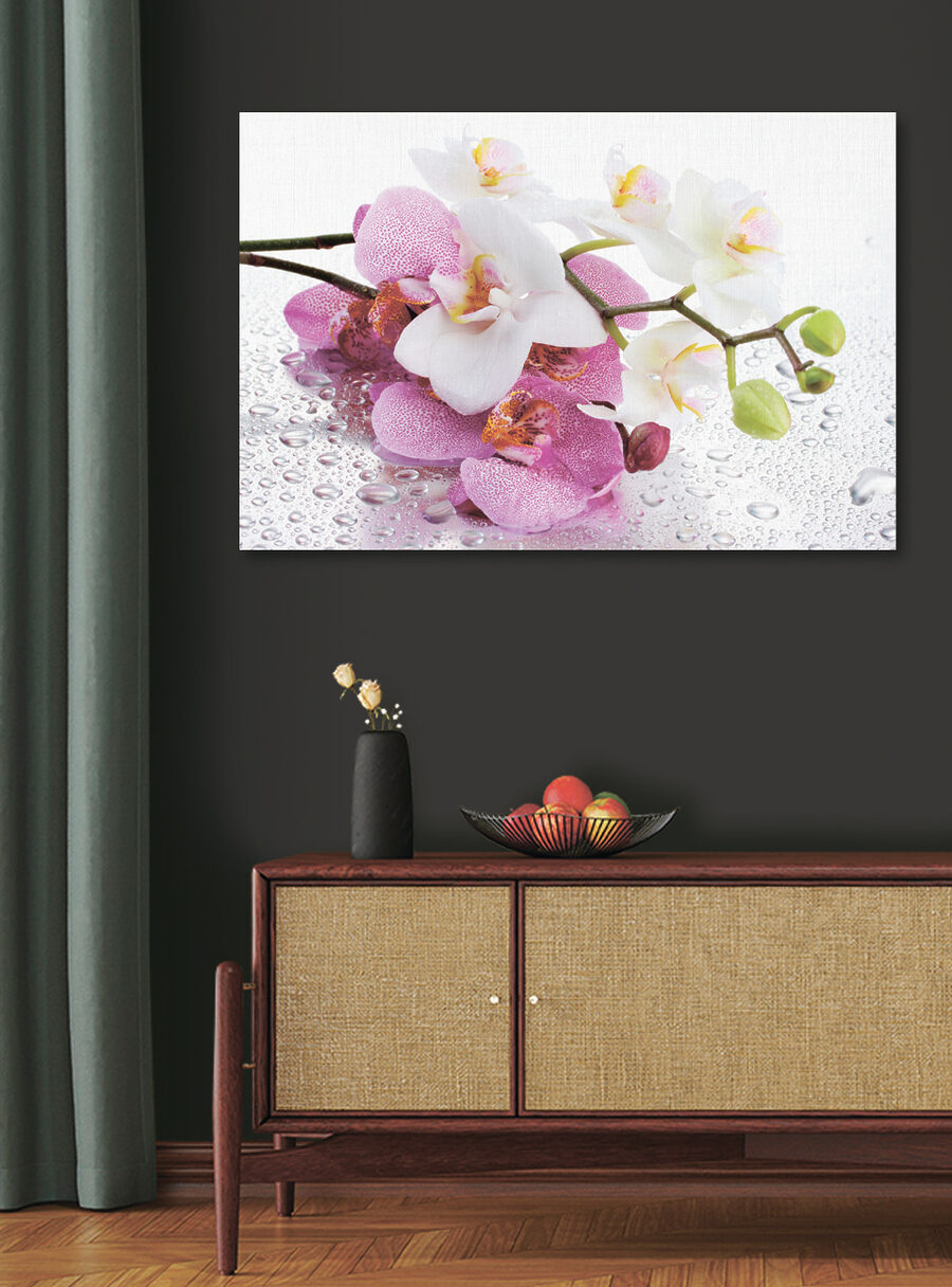 Dieser atemberaubende Leinwanddruck mit zarten Orchideen, die von sanften Wassertropfen geküsst werden, wertet Ihren Raum auf. Es ist, als ob man sich ein Stück Natur ins Haus holt, ohne die Gießkanne. Stellen Sie sich vor, Sie wachen jeden Tag mit dieser Farbenpracht auf – die leuchtenden Blütenblätter tanzen geradezu auf der Leinwand! Perfekt, um ein Wohnzimmer zu verschönern oder einen Hauch von Eleganz in ein Schlafzimmer zu bringen. Außerdem verbreitet es ein wenig Freude und erinnert daran, dass die Schönheit oft in den einfachsten Dingen zu finden ist. Wer würde sich nicht gerne von solch einer dauerhaften Frische umgeben fühlen? Hängen Sie es einfach auf und beobachten Sie, wie Ihre Wände neues Leben einhauchen.