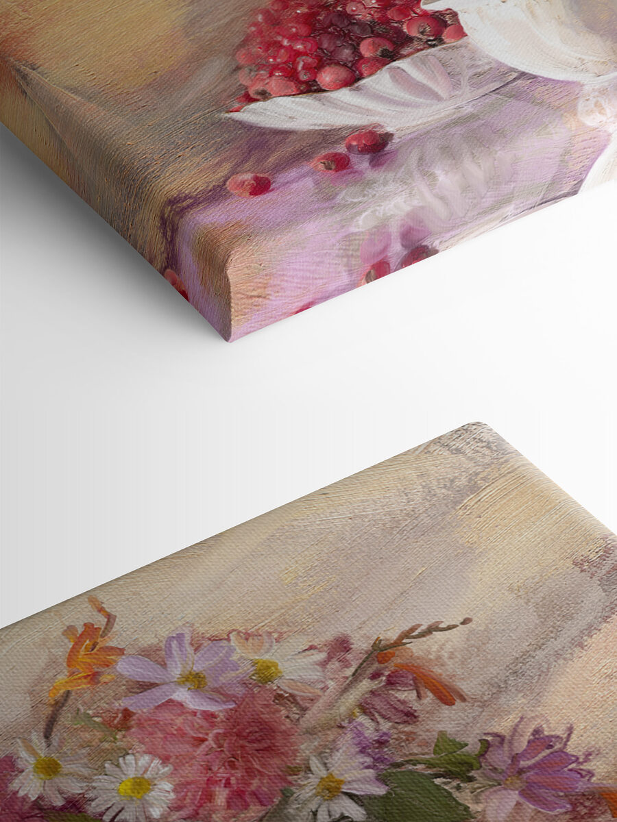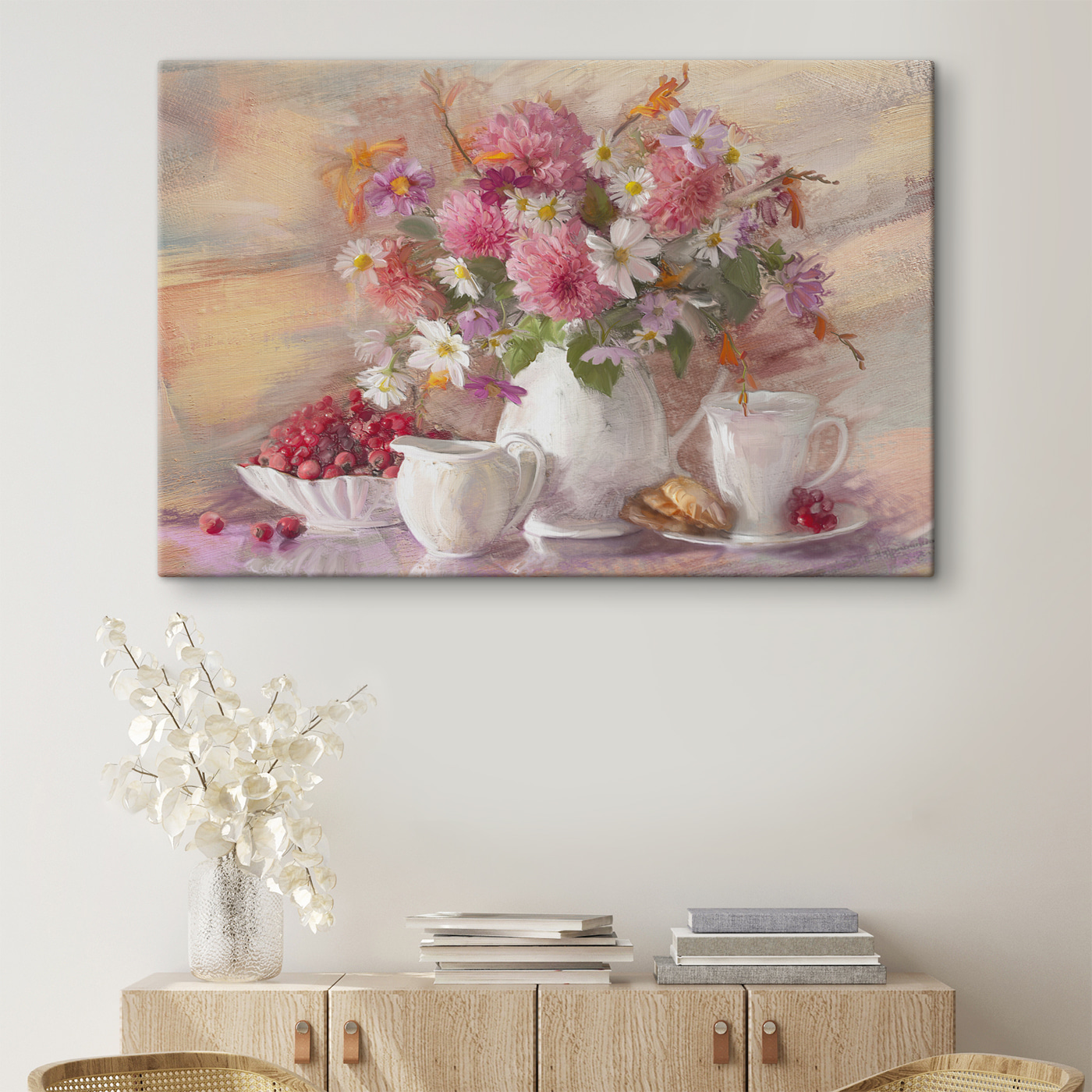 Verschönern Sie jeden Raum mit diesem entzückenden Leinwanddruck mit Blumen in einer Vase. Es ist, als ob man sich einen fröhlichen Garten ins Haus holt, ohne die Allergien. Die sanften Farben und das verspielte Arrangement wecken Freude und eignen sich perfekt für eine gemütliche Sitzecke oder über dem Frühstückstisch. Stellen Sie sich vor, Sie nippen an Ihrem Kaffee, während Sie sich in dieser lebendigen Aussicht sonnen – das könnte den Morgen ein wenig aufhellen. Außerdem passt es gut zu einer beliebigen Sammlung von Nippes. Es ist nicht nur Dekoration, sondern auch ein Stimmungsaufheller. Wer würde sich diese Art von Stimmung nicht wünschen?