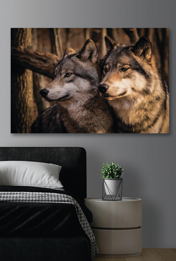 Stellen Sie sich diese majestätischen Wölfe in Ihrem Wohnzimmer vor, wie sie mit einem Hauch von Ruhe und Geheimnis in den Wald hinausblicken. Dieser Leinwanddruck “Wölfe, die in die Stille des Waldes blicken” fängt diesen heiteren Moment perfekt ein. Es ist Teil unserer Kollektionen “Leinwandbilder mit Tieren” und “Beliebte Leinwandbilder”. Man kann das sanfte Flüstern des Waldes und die Stille in der Luft fast spüren. Stellen Sie es sich über Ihrem Kamin oder in Ihrer gemütlichen Leseecke vor – es wird Sie jedes Mal in seinen Bann ziehen, wenn Sie vorbeigehen. Es ist die Art von Werk, die Sie dazu bringt, langsamer zu werden und sich vielleicht sogar für eine Weile in der Natur zu verlieren. Außerdem sehen diese Wölfe so aus, als hätten sie eine Menge Geschichten zu erzählen!