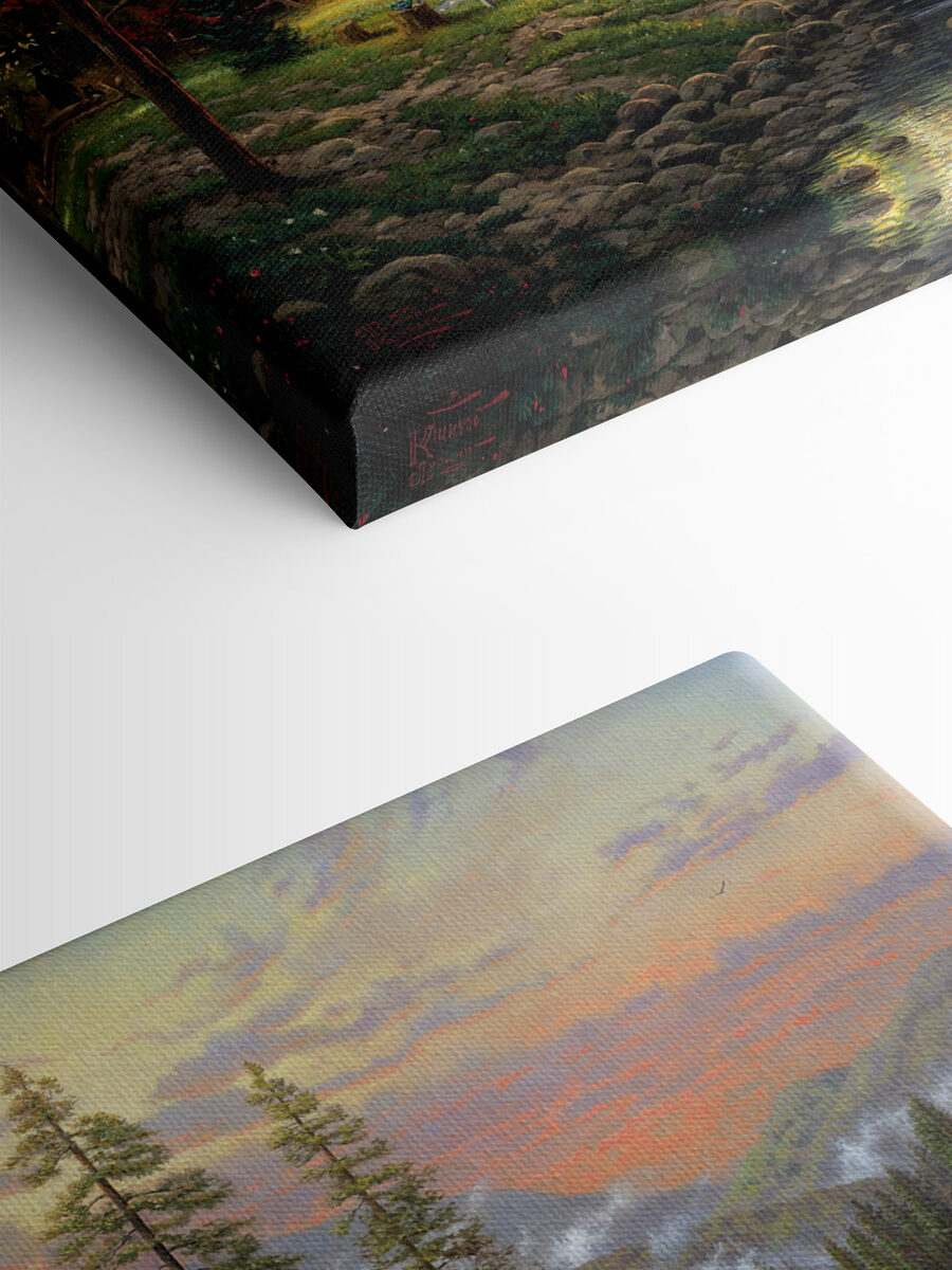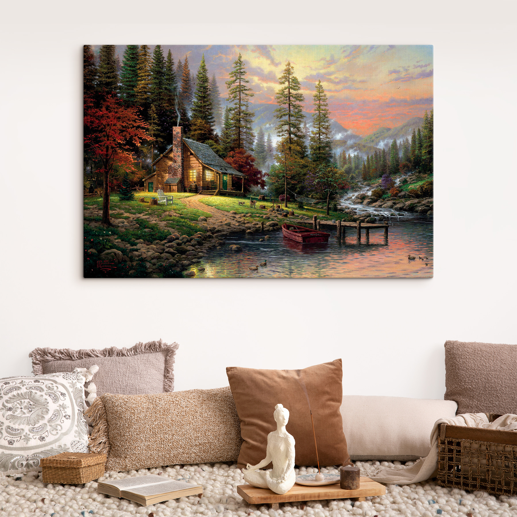 Stellen Sie sich eine Szene vor, in der die Natur ihre Geheimnisse ausplaudert, eine gemütliche Hütte an einem ruhigen Fluss. Dieser Leinwanddruck fängt die Essenz friedlicher Abende am Wasser ein, wo sich das sanfte Plätschern der Wellen mit dem süßen Duft von Kiefern vermischt. Es eignet sich perfekt, um jeder Ecke Wärme zu verleihen und verleiht ihr einen Hauch von rustikalem Charme, der sich einfach gut anfühlt. Stellen Sie sich vor, er hängt in einem Wohnzimmer und regt zu Gesprächen über Wochenendausflüge an oder schafft eine ruhige Kulisse für faule Nachmittage. Es ist nicht nur Dekoration, sondern eine Erinnerung an einfache Freuden. Ihr Raum hat diese warme Umarmung der Natur verdient.