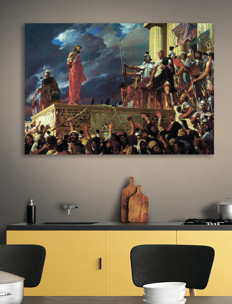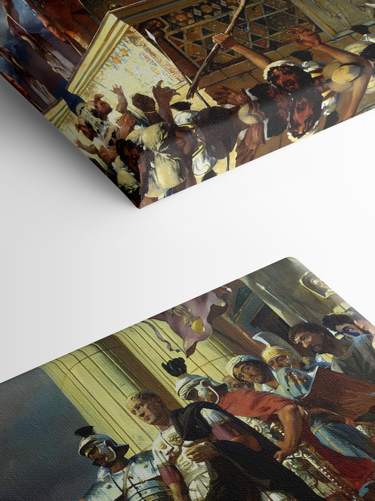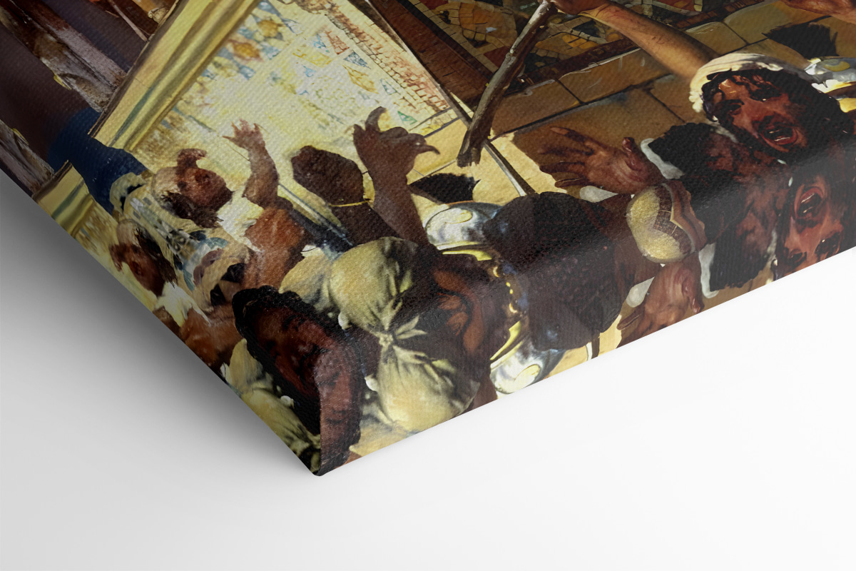 Dieser atemberaubende Leinwanddruck fängt die Dramatik eines Mannes in einem leuchtend roten Gewand ein, der auf einer Plattform steht, umgeben von einer begeisterten Menge. Es wirkt wie aus einem Märchenbuch! Stellen Sie sich dieses auffällige Bild an Ihrer Wand vor – es wird bestimmt einige interessante Gespräche auslösen. Die kräftigen Farben und die dynamische Szene bringen einen Hauch von Geschichte und Geheimnis in jeden Raum. Stellen Sie sich vor, wie Ihre Gäste innehalten, den Moment genießen und vielleicht sogar wilde Geschichten über die Szene erfinden. Perfekt für alle, die einen Hauch von kühnem Geschichtenerzählen in ihrer Einrichtung wünschen.