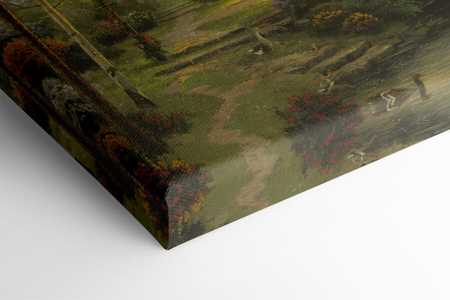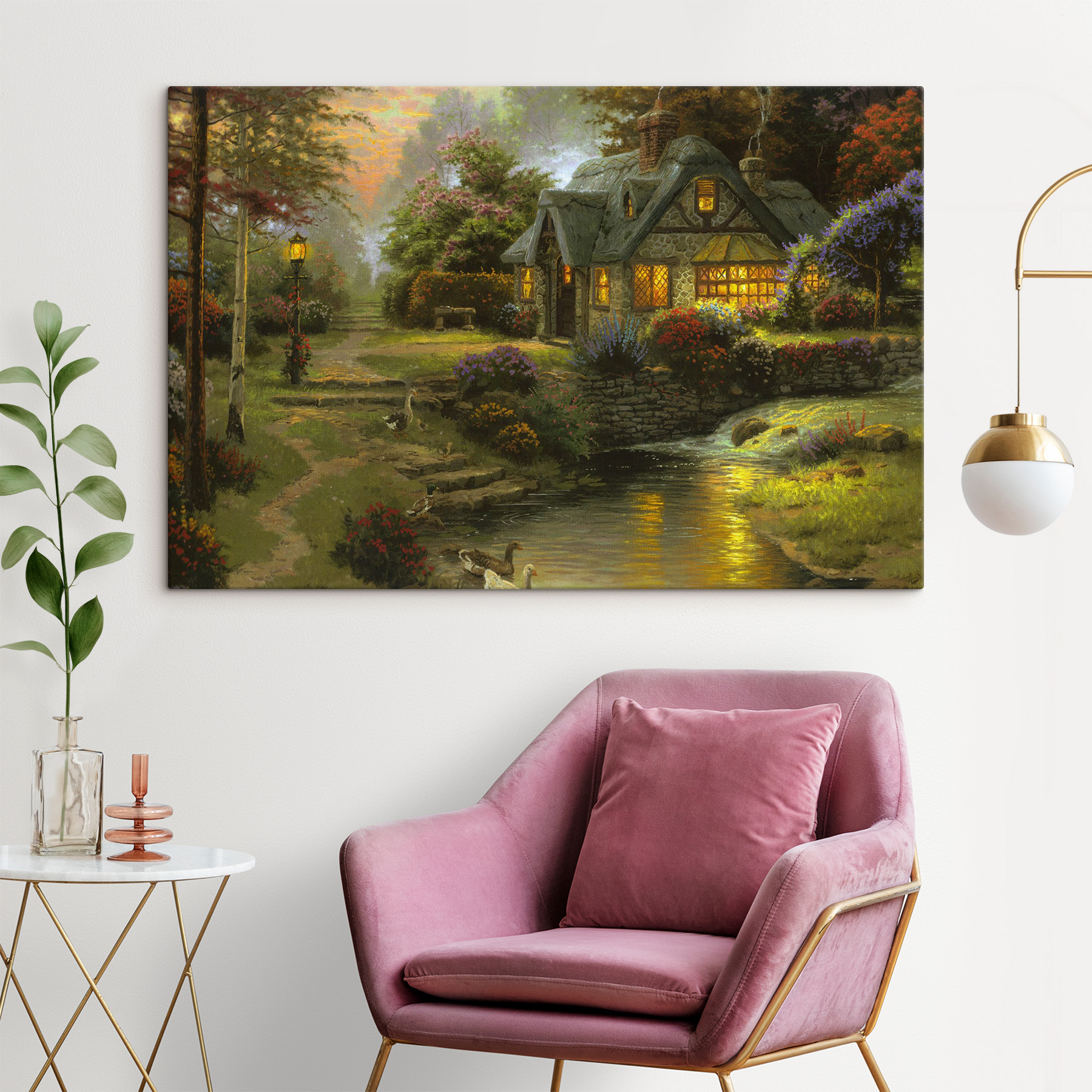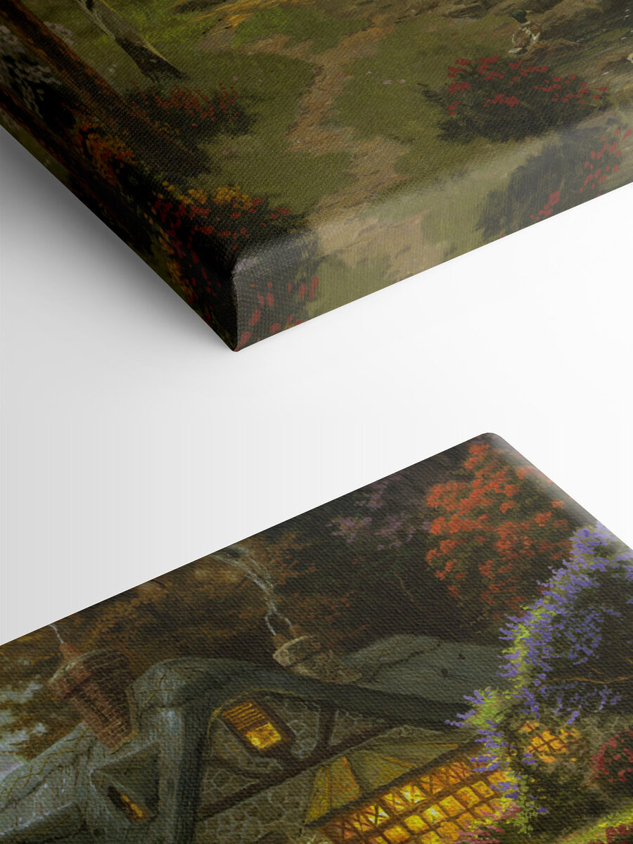 Haben Sie schon einmal davon geträumt, in ein gemütliches kleines Häuschen im Wald zu flüchten? Dieser Leinwanddruck erweckt diesen Traum zum Leben. Die bezaubernde Szene mit dem pfeifenden Schornstein ist wie eine warme Umarmung für Ihre Wände. Stellen Sie sich vor, wie Sie den gewundenen Pfad hinunterwandern, während ein sanftes Bächlein in der Nähe plätschert und der sanfte Schein von Laternen Ihren Weg erhellt. Perfekt für alle, die sich nach einem Hauch von Laune und Wärme in ihrem Heim sehnen. Ganz gleich, ob Sie Ihr Wohnzimmer verzaubern oder eine gemütliche Leseecke einrichten möchten, dieses Stück wird Sie an einen Ort versetzen, an dem alles einfach und ruhig ist.