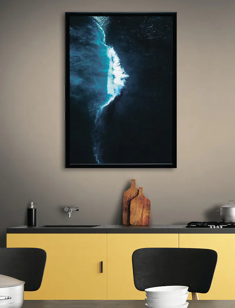 Holen Sie sich die Schönheit des Ozeans in Ihr Zuhause mit dem Leinwanddruck einer Welle, die ins tiefe Blau stürzt. Dieses Werk fängt mühelos die rohe Kraft und Ruhe der Natur ein. Stellen Sie sich vor, wie Sie sich in Ihren Lieblingssessel sinken lassen und das Geräusch der Wellen in Ihrem Kopf widerhallt, während dieses atemberaubende Wandbild Ihren Raum in einen Rückzugsort am Meer verwandelt. Es ist, als hätten Sie ein Stück Strand, nur ohne den Sand in Ihren Schuhen. Dieses Wandbild ist perfekt, um eine leere Wand aufzuhellen oder eine strandige Atmosphäre zu schaffen, denn es strahlt Ruhe und Charme aus. Lassen Sie sich vom Tanz des Ozeans für Ihren Alltag inspirieren!