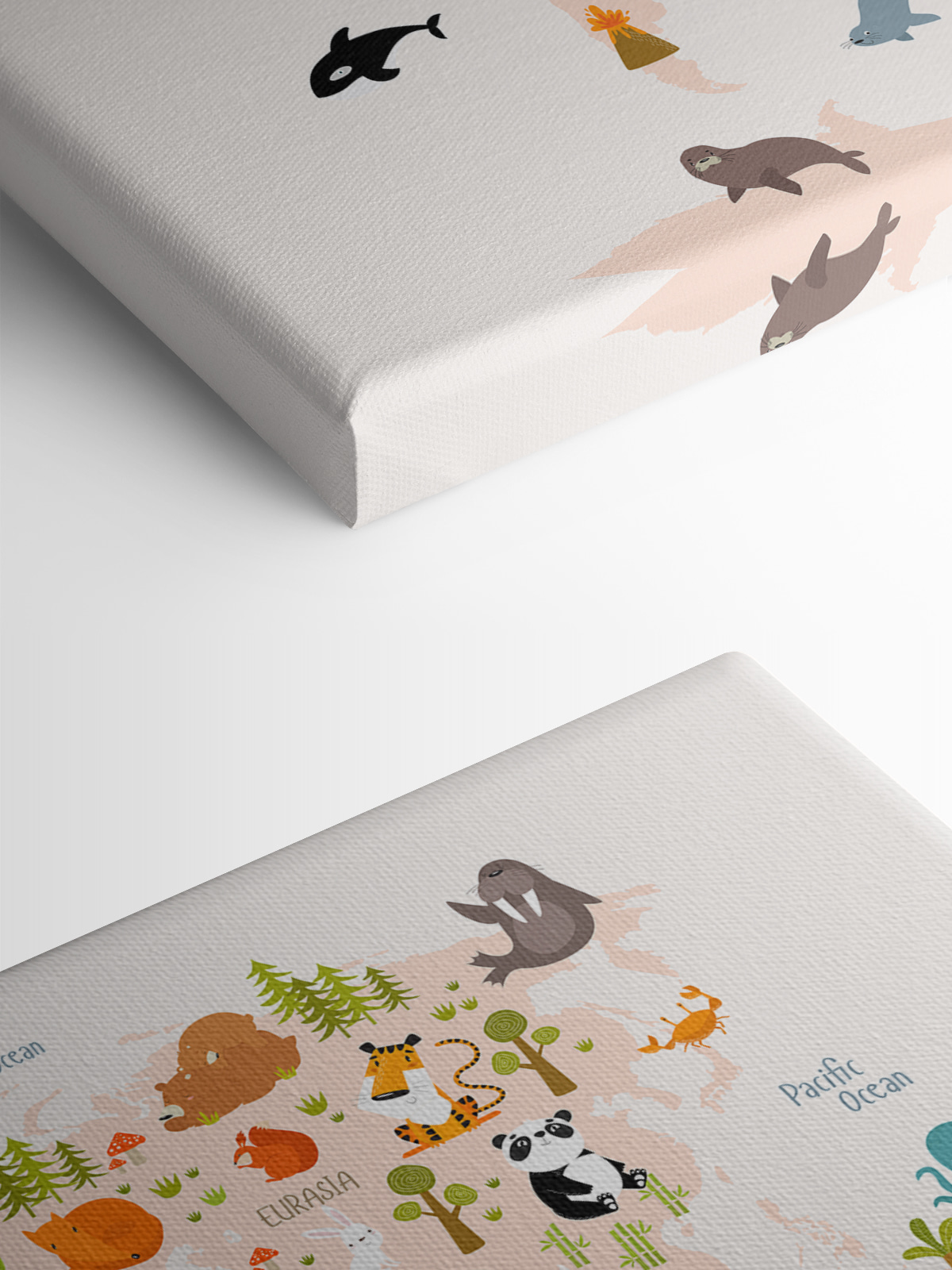Stellen Sie sich das vor: eine Weltkarte, die nicht nur informativ ist, sondern auch vor Charakter strotzt! Diese “Weltkarte mit Tieren auf Leinwand” ist perfekt – besonders für Kinderzimmer. Stellen Sie es sich vor: liebenswerte Löwen, fröhliche Pinguine, stoische Bären – alle in ihrem natürlichen Lebensraum und mit viel Persönlichkeit.