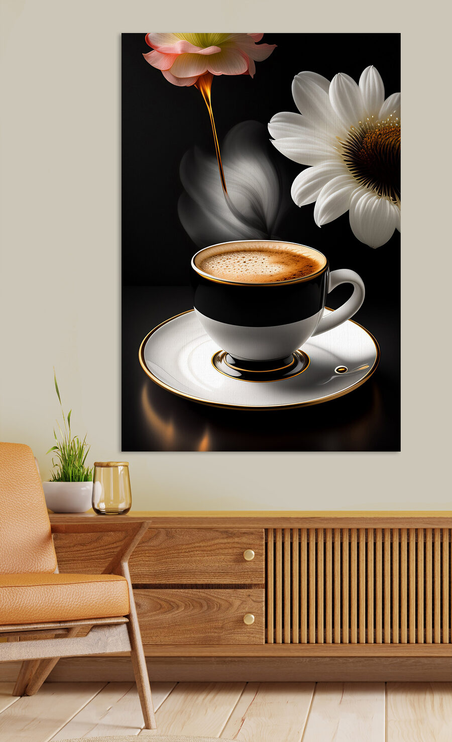 Stellen Sie sich vor, Sie beginnen Ihren Tag mit einem reichhaltigen, aromatischen Espresso, dessen Wärme den Raum erfüllt, während darüber zarte Blumenwirbel tanzen. Das ist die Stimmung, die von diesem Leinwanddruck “Floral Aroma Swirling Above Espresso” ausgeht. Perfekt für Ihre Küche oder Kaffee-Ecke! Das skurrile Design mischt satte Kaffeetöne mit zarten Blumen und verleiht dem Raum eine gemütliche, einladende Atmosphäre. Können Sie es nicht einfach riechen? Stellen Sie sich vor, wie entspannt Ihr Morgen sein könnte, wenn Sie Ihr Gebräu schlürfen und eine Leinwand voller Charme und Dufterinnerungen in der Nähe hängt.