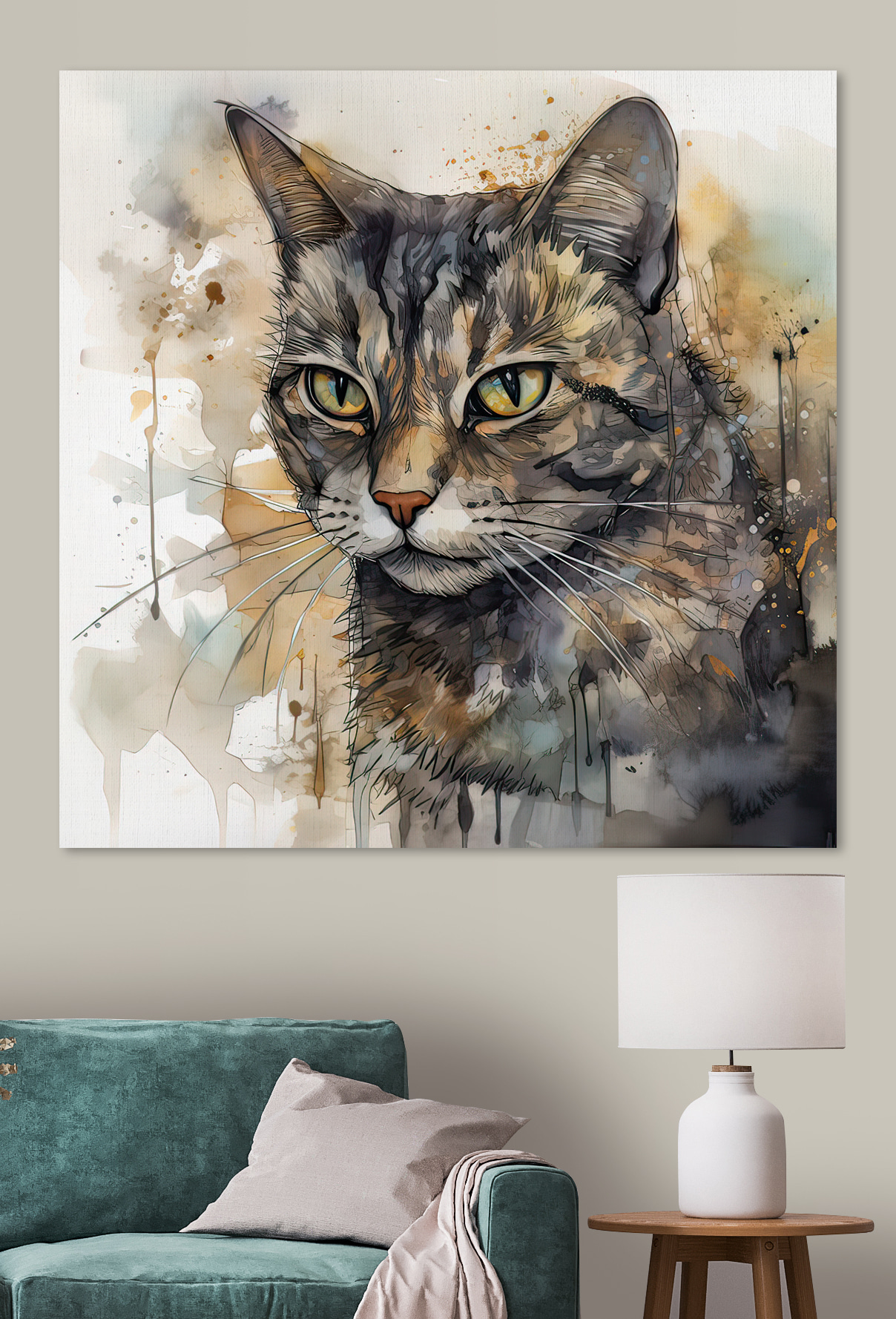 Haben Sie jemals gedacht, dass Ihr Wohnzimmer ein bisschen mehr Persönlichkeit braucht? Dann sollten Sie sich dieses umwerfende Leinwandbild ansehen – ein Gesprächsanreger, der nicht alle Ihre Snacks auffrisst. “Wandbilder s32299” fängt den wilden und doch etwas distanzierten Blick dieser Katze in lebhaften Aquarelltupfern ein. Das Bild ist für Tier- und Kunstliebhaber gleichermaßen geeignet und versprüht Charme und einen Hauch von Geheimnis – diese Augen, nicht wahr?