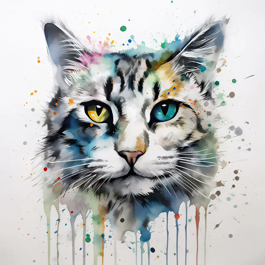Lernen Sie das Leinwandbild “Vibrant Cat with Colorful Eyes” kennen, eine schnurrige Mischung aus Laune und Charme. Dieses auffällige Kunstwerk versprüht eine entzückende Farbenpracht, die jedem Raum einen verspielten Geist verleiht. Stellen Sie sich vor, Sie betreten einen Raum, über den diese auffällige Katze wacht – ihre ungleichen Augen scheinen eine Welt voller Geheimnisse zu bergen. Ob im Kinderzimmer oder in einer gemütlichen Leseecke, dieses Stück sorgt für eine witzige Abwechslung, die mit Sicherheit für Gesprächsstoff sorgt. Und wer liebt nicht eine Katze, die genau die richtige Portion Unfug ausstrahlt? Im Grunde ist es eine Einladung, der Fantasie freien Lauf zu lassen.