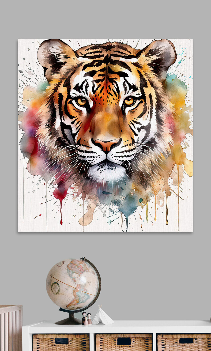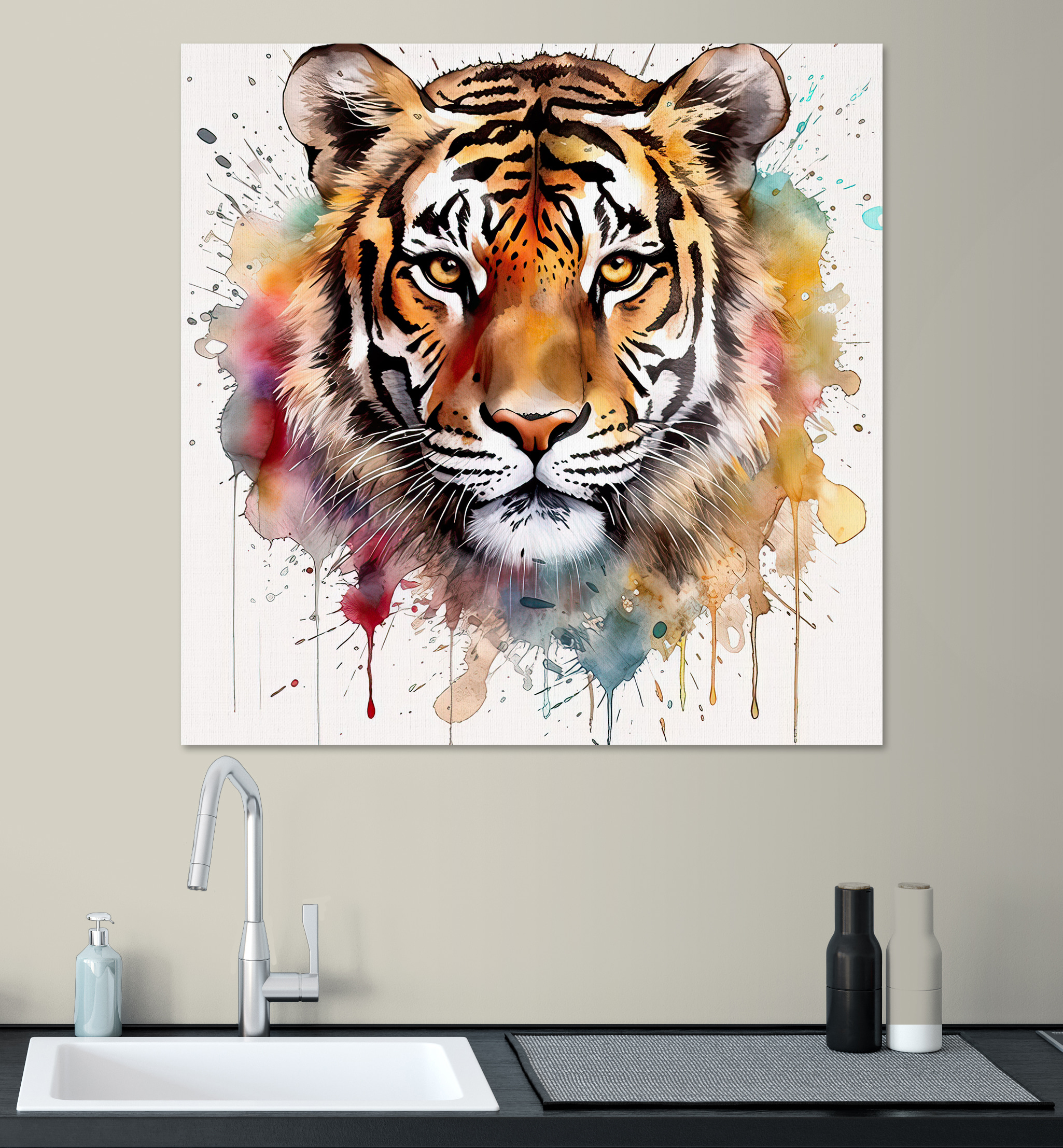 Bringen Sie frischen Wind in jeden Raum mit dieser atemberaubenden Leinwand eines Tigers in leuchtenden Farben! Stellen Sie sich vor, Sie betreten einen Raum, in dem diese majestätische Kreatur direkt von der Wand zu brüllen scheint – mit Augen, die vor Schelmerei funkeln. Es ist, als ob ein Abenteurer über Ihr Zuhause wachen würde. Der Aquarell-Effekt sorgt für eine verspielte Atmosphäre und macht es perfekt für ein gemütliches Wohnzimmer oder ein lebendiges Büro. Vielleicht bleiben Ihre Freunde stehen und fragen: “Wow, woher hast du das?” Lassen Sie sich von dem Charme des Tigers anstecken. Es ist nicht nur Kunst, sondern auch ein Stimmungsaufheller!