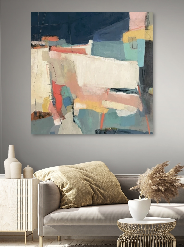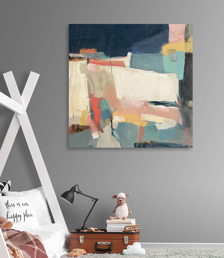 Die Mischung aus Blau-, Rosa- und Gelbtönen sitzt nicht einfach nur still an der Wand – sie tanzt. Platzieren Sie es in Ihrem Büro, Schlafzimmer oder sogar im Flur. Überall, wo es die Aufmerksamkeit auf sich zieht und sagt: “Hey, sieh mich an!” Und seien wir mal ehrlich, wer braucht nicht ein bisschen mehr Spaß in seiner Einrichtung? Also nur zu, schenken Sie Ihren Wänden etwas Liebe. Sie werden es nicht bereuen.