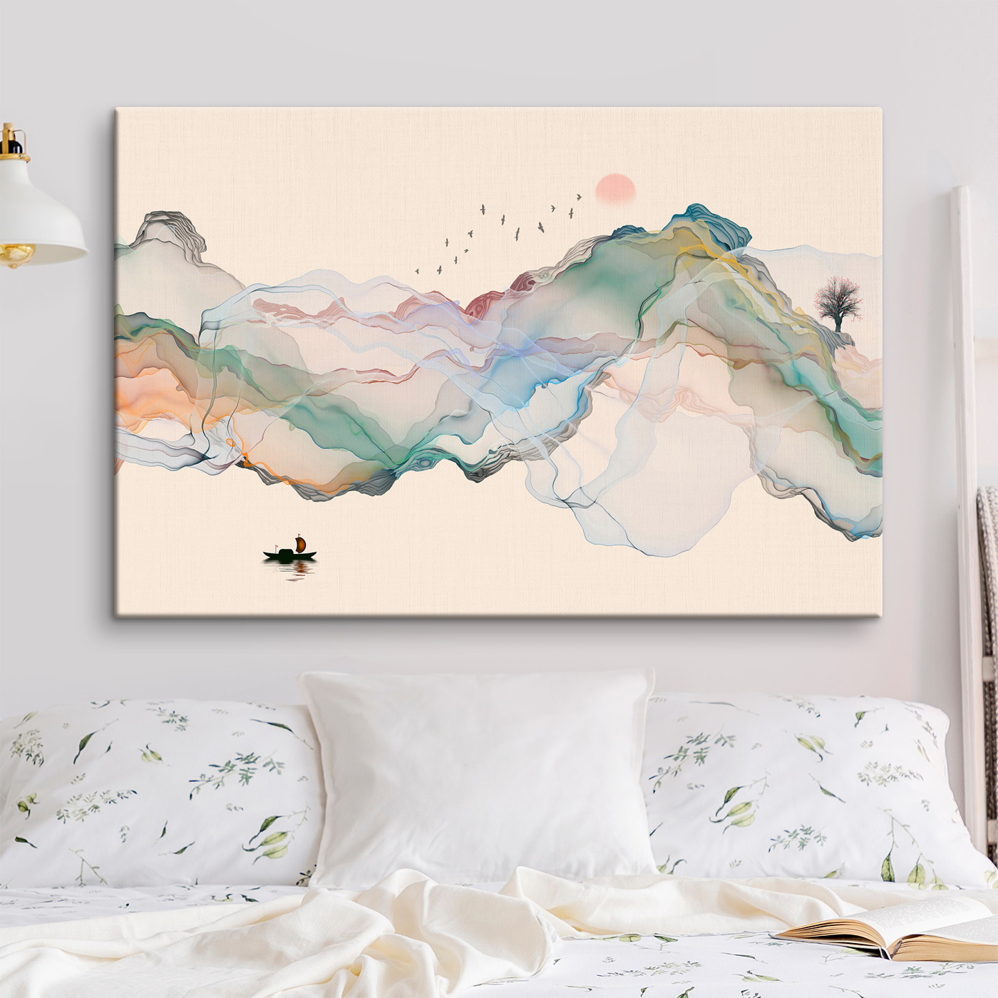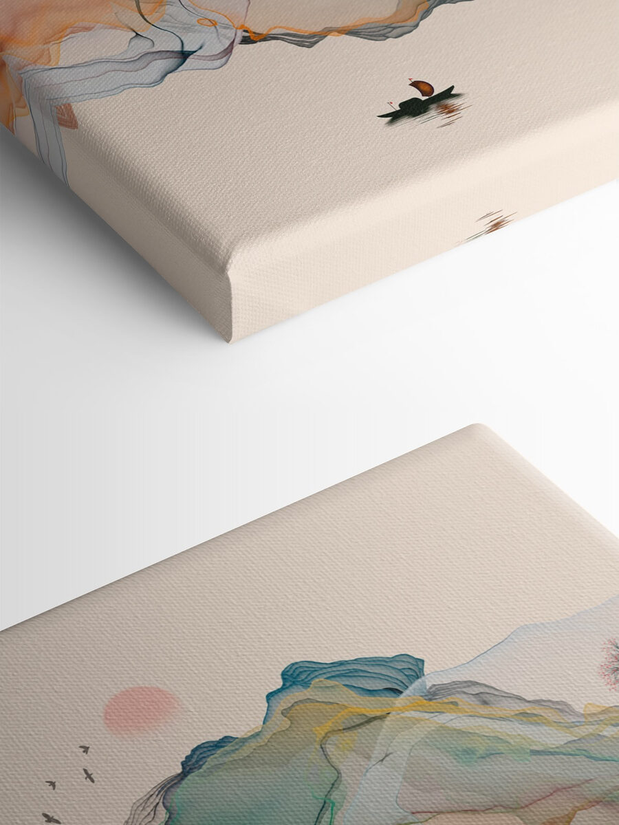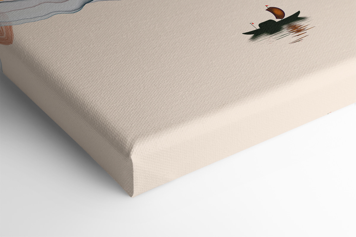 Stellen Sie sich vor, Sie betrachten diesen atemberaubenden Leinwanddruck eines einsamen Bootes mit Flaggen, das in aller Ruhe vor dem Hintergrund sanfter, fließender Berge und eines sanften Sonnenaufgangs dahintreibt. Es ist wie ein visuelles Wiegenlied, beruhigend und hypnotisierend. Und die Farben? Oh, sie sind eine poetische Mischung aus Pastelltönen, die einfach ineinander übergehen – Blau-, Rosa- und Grüntöne, die sich in perfekter Harmonie vermischen. Man könnte sich dieses Stück durchaus an einer Wohnzimmerwand vorstellen, wo es diese verträumte, fast schon skurrile Stimmung verbreitet, die Gäste innehalten und einen zweiten Blick riskieren lässt. Es ist eine kleine Flucht, direkt an Ihrer Wand – eine Erinnerung daran, dass es da draußen eine ganze Welt voller Ruhe und Geheimnisse gibt. Perfekt für Naturliebhaber und alle, die einzigartige, schöne Kunst mit einer Geschichte lieben.
