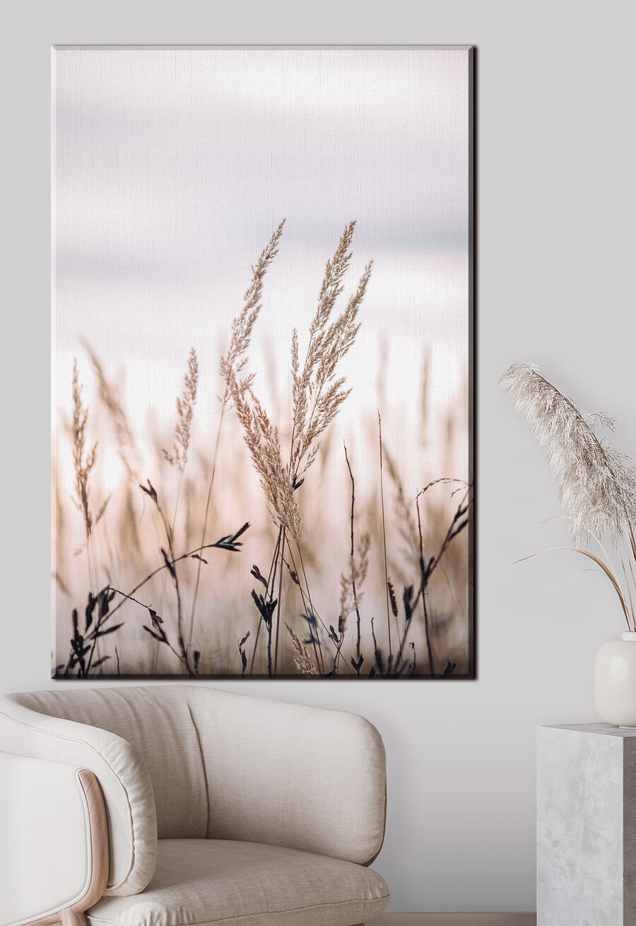 Stellen Sie sich vor, Sie kommen nach einem langen Tag nach Hause und werden von der sanften Umarmung der Natur in Ihrem Wohnzimmer begrüßt. “Whispering Reeds in Serene Light” ist wie eine sanfte Umarmung für Ihre Wände. Die zarten Gräser, die sich in der Brise wiegen, lassen Sie fast ein Flüstern hören, als wäre es ein kleines Geheimnis der Natur. Dieses beruhigende Stück verleiht einen Hauch von Ruhe und Eleganz und verwandelt jeden Raum in einen friedlichen Rückzugsort. Perfekt für alle, die sich zurückziehen wollen, ohne das Haus zu verlassen. Ist es nicht schön, sich von der Kunst Gelassenheit ins Leben bringen zu lassen?
