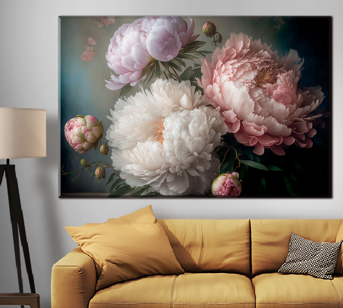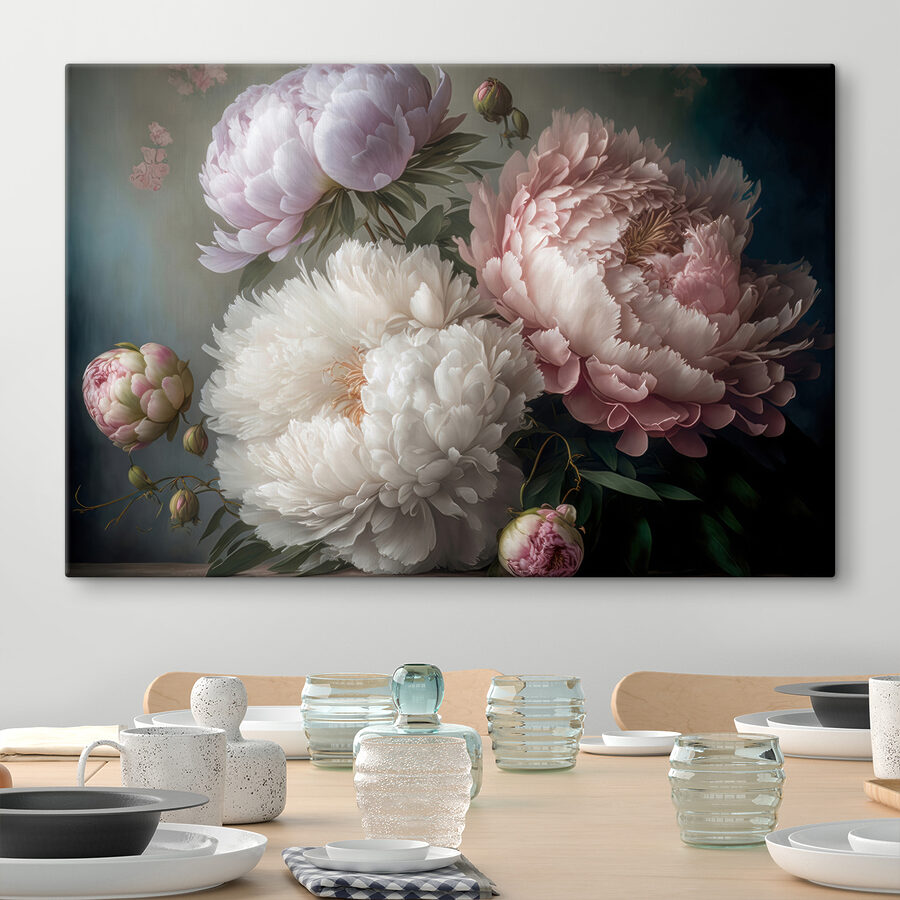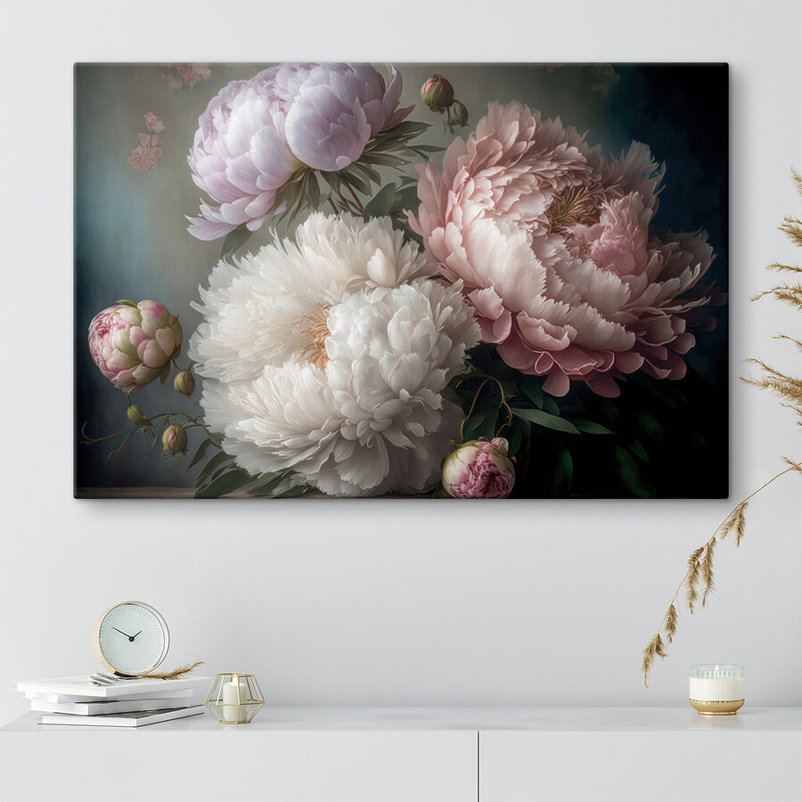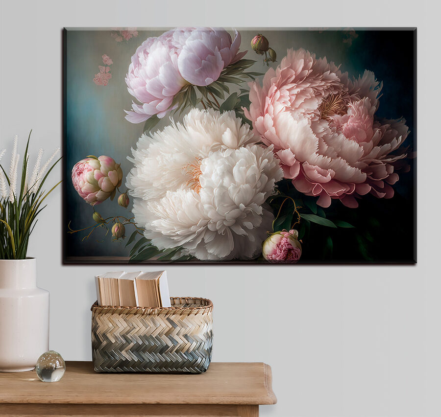 Verwandeln Sie jeden Raum in einen ruhigen Rückzugsort mit diesem atemberaubenden Leinwanddruck, der elegante Pfingstrosen in zarter Blüte zeigt. Wie ein Freund, der immer Sonnenschein bringt, verbreiten diese Blumen Wärme und Farbe und schaffen eine einladende Atmosphäre. Stellen Sie sich vor, wie Sie an einem Tee nippen, während dieses wunderschöne Kunstwerk sanft Ihre Wand schmückt und zu Tagträumen und Frühlingsgeflüster anregt. Jedes Blütenblatt scheint eine Geschichte zu erzählen, die das Herz berührt. Dieses Kunstwerk eignet sich perfekt, um ein Wohnzimmer zu verschönern oder einem Schlafzimmer einen Hauch von Eleganz zu verleihen, denn es wird Sie und Ihre Gäste in gute Stimmung versetzen.