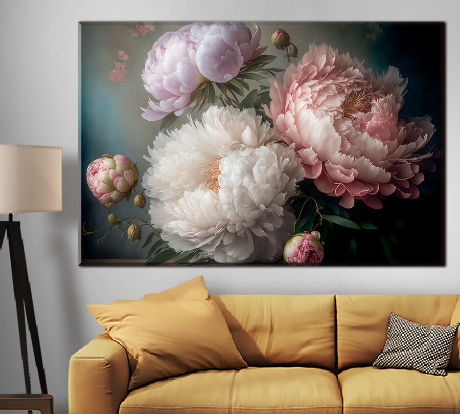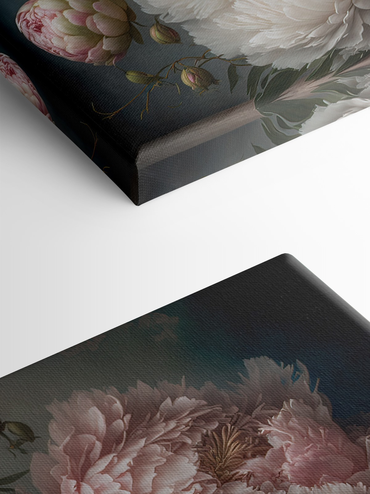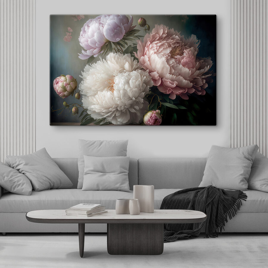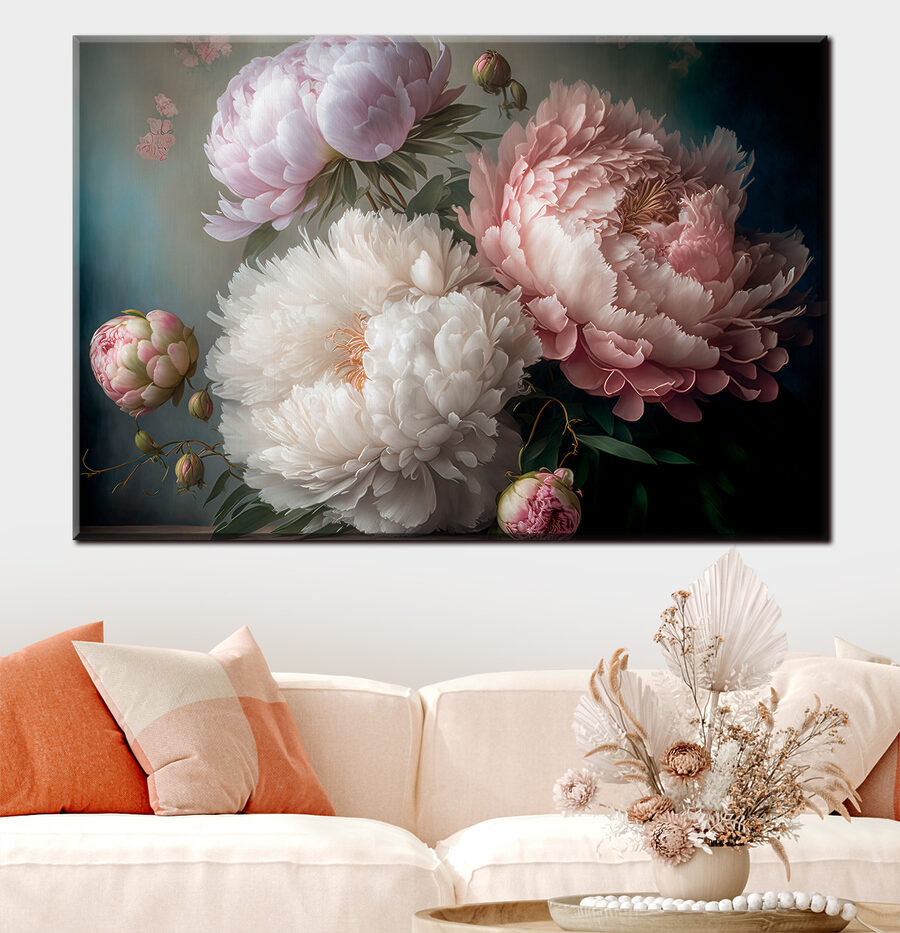 Verwandeln Sie jeden Raum in einen ruhigen Rückzugsort mit diesem atemberaubenden Leinwanddruck, der elegante Pfingstrosen in zarter Blüte zeigt. Wie ein Freund, der immer Sonnenschein bringt, verbreiten diese Blumen Wärme und Farbe und schaffen eine einladende Atmosphäre. Stellen Sie sich vor, wie Sie an einem Tee nippen, während dieses wunderschöne Kunstwerk sanft Ihre Wand schmückt und zu Tagträumen und Frühlingsgeflüster anregt. Jedes Blütenblatt scheint eine Geschichte zu erzählen, die das Herz berührt. Dieses Kunstwerk eignet sich perfekt, um ein Wohnzimmer zu verschönern oder einem Schlafzimmer einen Hauch von Eleganz zu verleihen, denn es wird Sie und Ihre Gäste in gute Stimmung versetzen.
