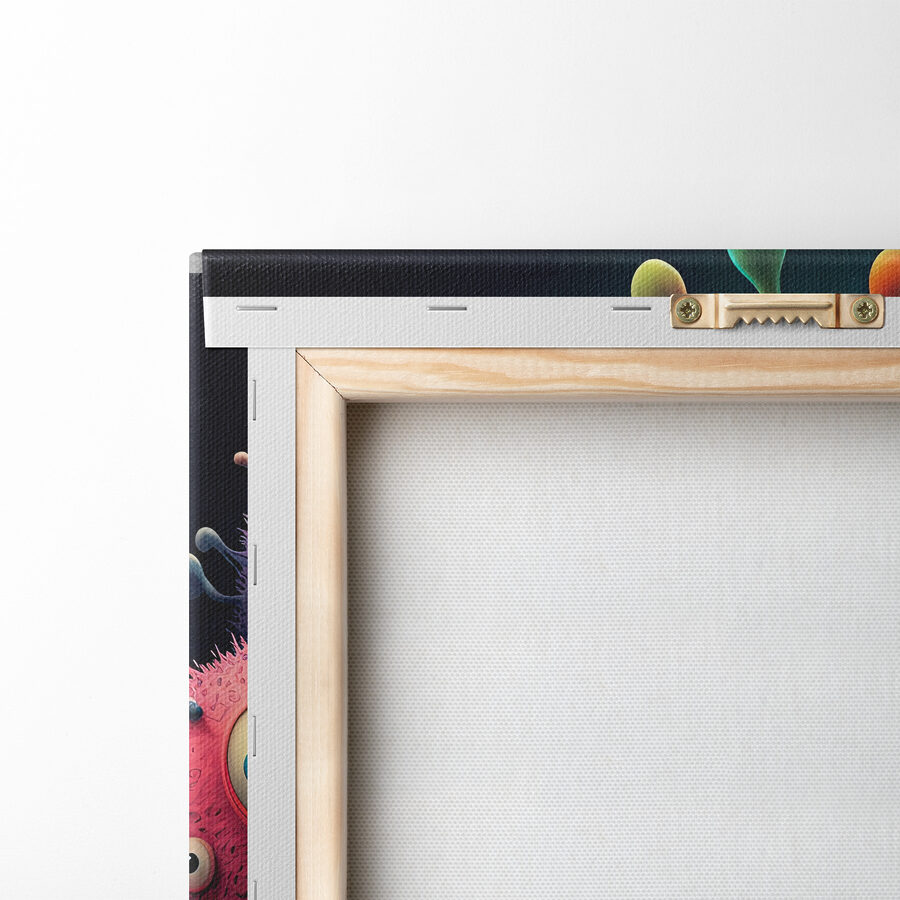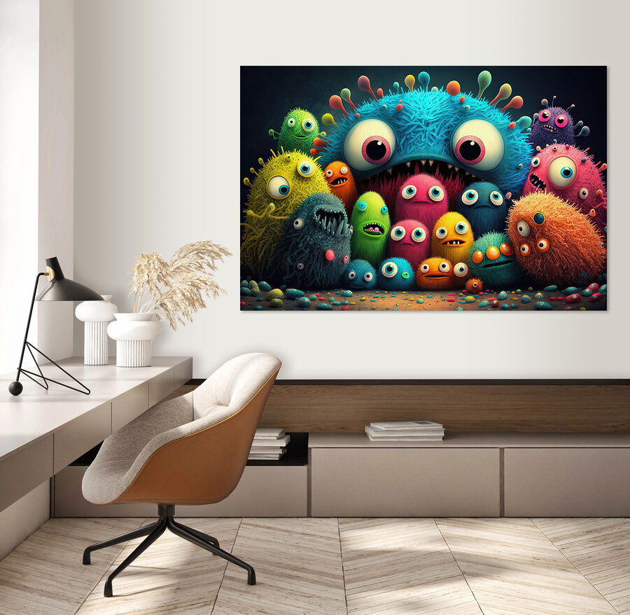 Verwandeln Sie das Zimmer Ihres Kindes in einen Ort der Freude mit unserem Kunstwerk “Leinwanddrucke Gruppe bunter Monster”. Diese schrulligen, liebenswerten Monster sind nicht hier, um zu erschrecken – sie sind hier, um zu bezaubern – und eignen sich perfekt, um jedem Raum einen Hauch von Persönlichkeit zu verleihen. Stellen Sie sich die Freude und das Kichern der Kleinen vor, wenn sie sich Geschichten über die pelzigen, großäugigen Kreaturen ausdenken. Die leuchtenden Farben und die verrückten Gesichtsausdrücke schaffen eine einnehmende und spielerische Atmosphäre. Es ist fast so, als ob diese farbenfrohen Kumpels bereit wären, von der Leinwand zu springen und sich dem Spaß anzuschließen. Ein absolutes Must-Have für jeden Raum, der Laune und Wärme braucht.