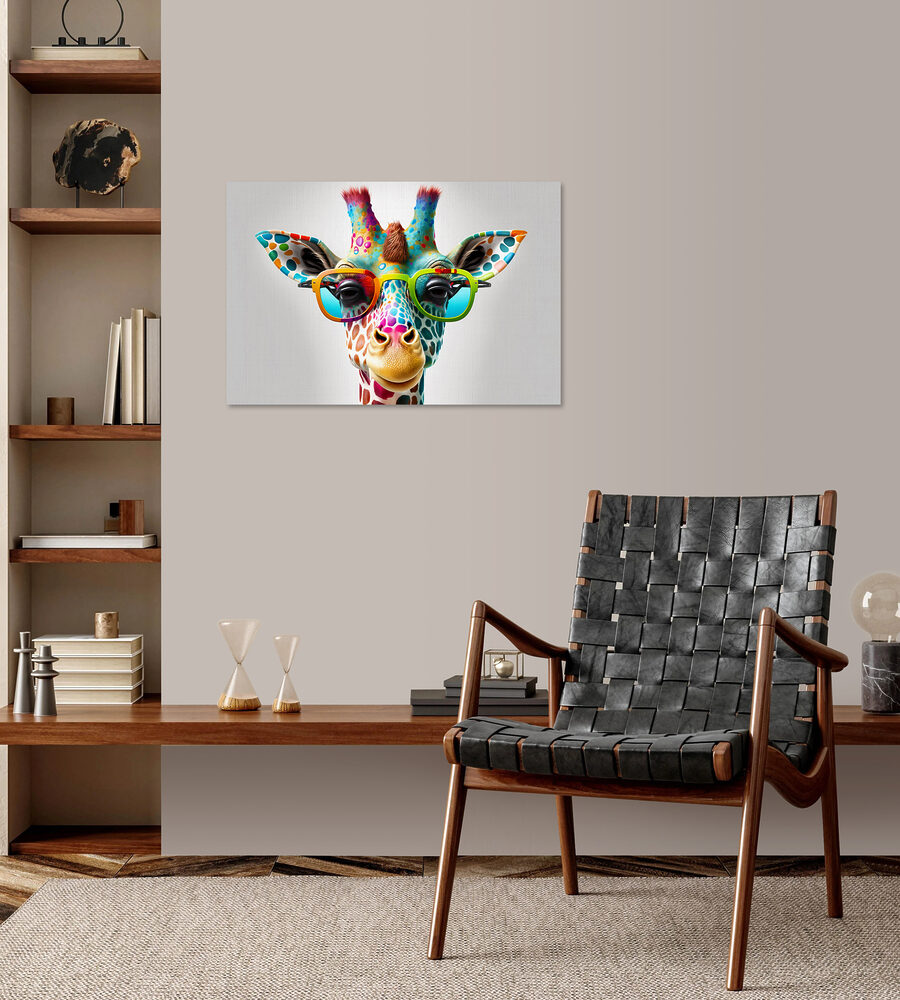 Haben Sie schon einmal daran gedacht, Ihren Wänden einen Hauch von Spaß zu verleihen? Dann sieh dir diesen Leinwanddruck einer Giraffe an, die eine echt flippige Sonnenbrille trägt. Sie ist wie dein neuer schrulliger Mitbewohner! Perfekt für Tierliebhaber oder alle, die sich nach ein bisschen Farbe in ihrem Raum sehnen. Stellen Sie sich diese lebhafte und skurrile Giraffe vor, die in Ihrem Wohnzimmer, Schlafzimmer oder sogar im Flur chillt und einfach gute Laune verbreitet. Glauben Sie mir, sie hebt sofort die Stimmung. Jedes Mal, wenn Sie vorbeigehen, werden Sie vielleicht ein Lächeln aufsetzen. Es fühlt sich an, als hätte man einen Hauch von Safari-Magie zu Hause, nicht wahr? Es ist perfekt, um mit Gästen zu plaudern oder einfach nur den eigenen Tag aufzuheitern.