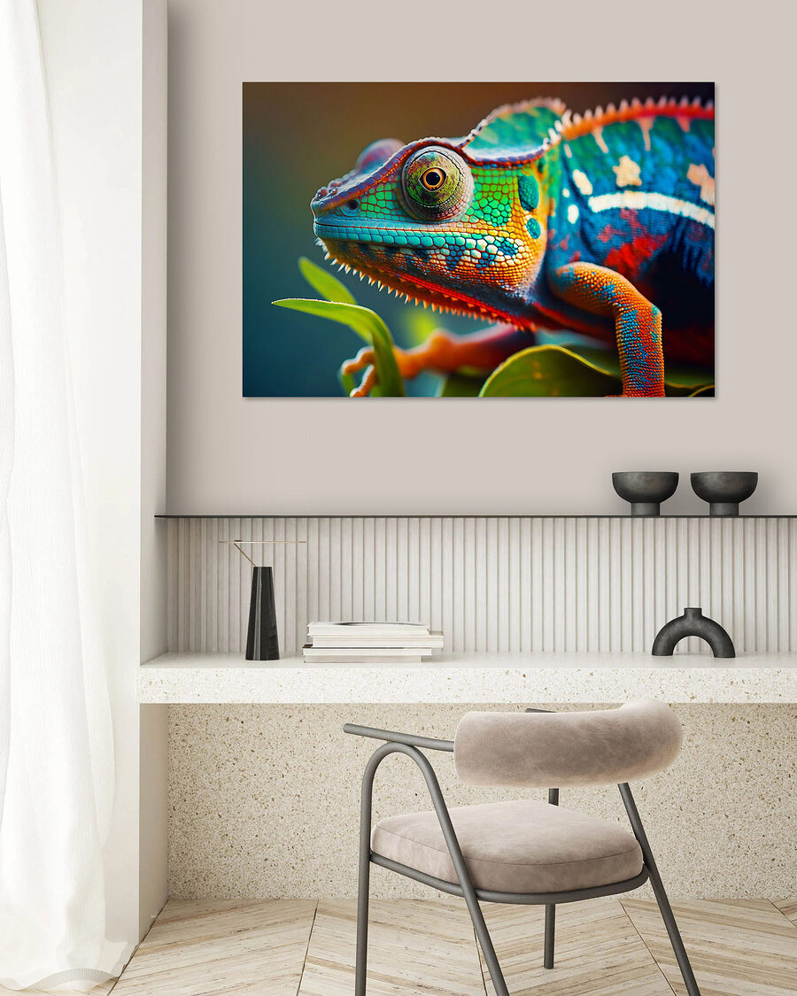Bringen Sie einen Hauch von Wildnis in Ihr Zuhause mit dem Leinwanddruck “Colorful Lizard on a Leaf”. Dieses farbenfrohe Bild zeigt eine schillernde Eidechse, die aussieht, als würde sie direkt von der Leinwand springen. Stellen Sie sich vor, es würde in einem gemütlichen Wohnzimmer hängen oder einen tristen Flur aufhellen – ein echter Stimmungsaufheller! Die Mischung der Farben kann Freude auslösen, wie die perfekte Tasse Kaffee an einem Montagmorgen. Außerdem ist es ein toller Gesprächsanlass; Freunde könnten schwören, dass es ihnen ein Augenzwinkern geschenkt hat! Perfekt für Naturliebhaber oder alle, die sich einen persönlichen Akzent in ihrem Raum wünschen. Lassen Sie diese schrullige Eidechse Ihr kleines Geheimnis sein; sie könnte Sie sogar zu unverschämten Tagträumen über Dschungelabenteuer inspirieren. Wer hätte gedacht, dass Dekoration so lustig sein kann?