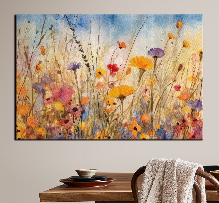 Stellen Sie sich vor, Sie blicken jeden Tag auf ein leuchtendes Feld voller Wildblumen. Dieser Leinwanddruck “Vibrant Wildflowers in Watercolor Burst” ist wie ein Spritzer Glück für Ihre Wände. Durch die Aquarelltechnik wirkt jede Blume lebendig, als hätte die Natur beschlossen, sich selbst zu malen. Perfekt für ein Wohnzimmer, das einen Farbklecks braucht, oder ein Schlafzimmer, das eine fröhliche Note verdient hat. Es ist, als hätte man einen immerwährenden Frühling im Haus, der kein Gießen erfordert. Wir wetten, Sie können die Blüten fast riechen. Es ist nicht nur Kunst – es ist ein kleines Stückchen Freude an der Natur. Prost auf frische Stimmung und endlose Blüten!