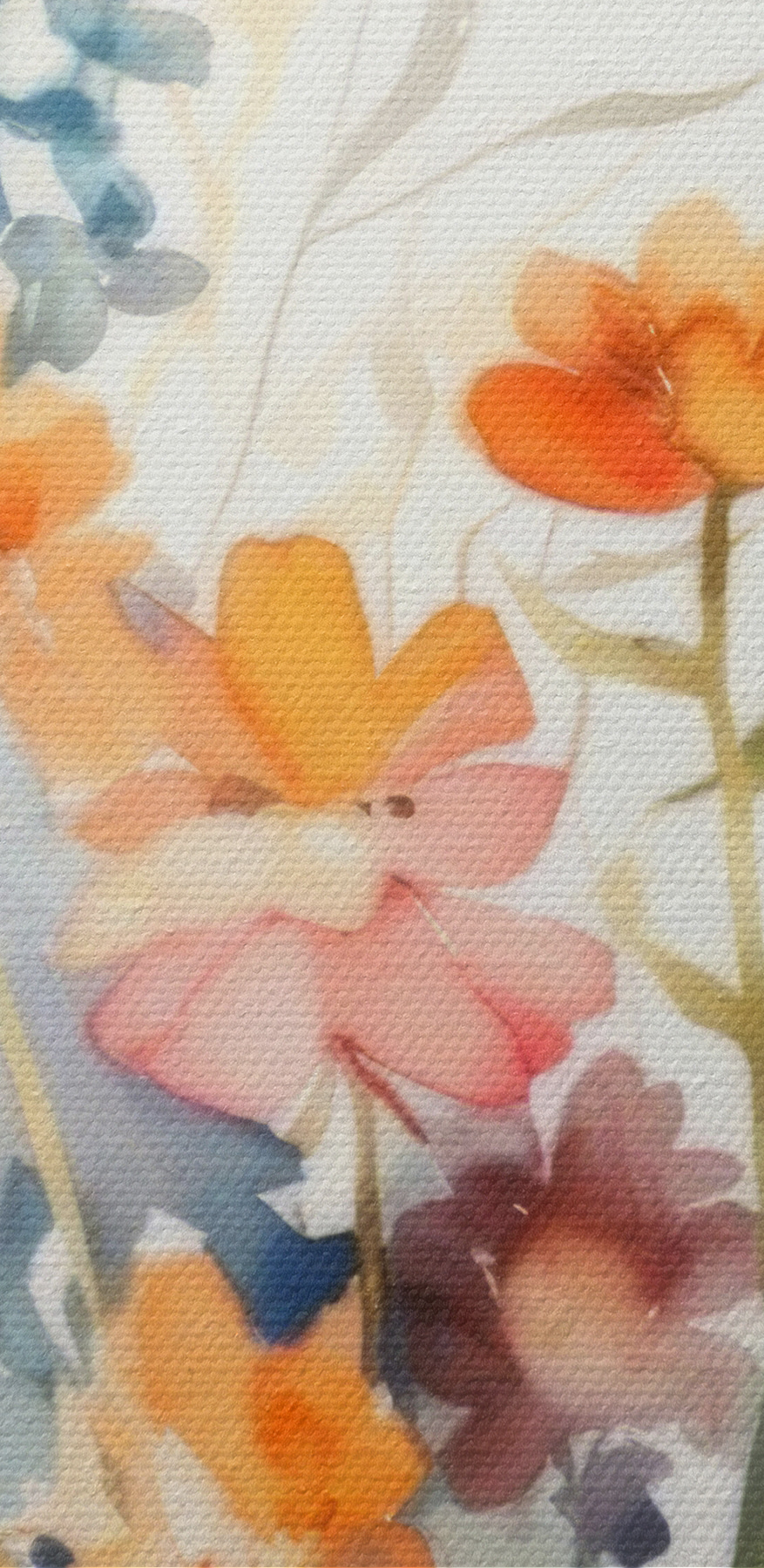 Verschönern Sie jeden Raum mit diesem bezaubernden Leinwandbild, das bunte Gartenblumen in einem weichen Aquarellstil zeigt. Es fühlt sich an wie ein frischer Frühlingstag und bringt eine sanfte, luftige Stimmung in Ihren Raum. Stellen Sie sich vor, wie Sie an einem Tee nippen, das Sonnenlicht hereinströmt und diese Blumen Sie wie eine warme Umarmung zum Lächeln bringen. Es ist perfekt für die kahle Wand, die nach etwas Liebe lechzt, oder als skurriles Mittelstück in einer Galeriewand. Dieses Bild ist perfekt für Blumenliebhaber und erinnert alle, die es sehen, daran, dass Schönheit überall ist. Ein echter Gesprächsanlass!