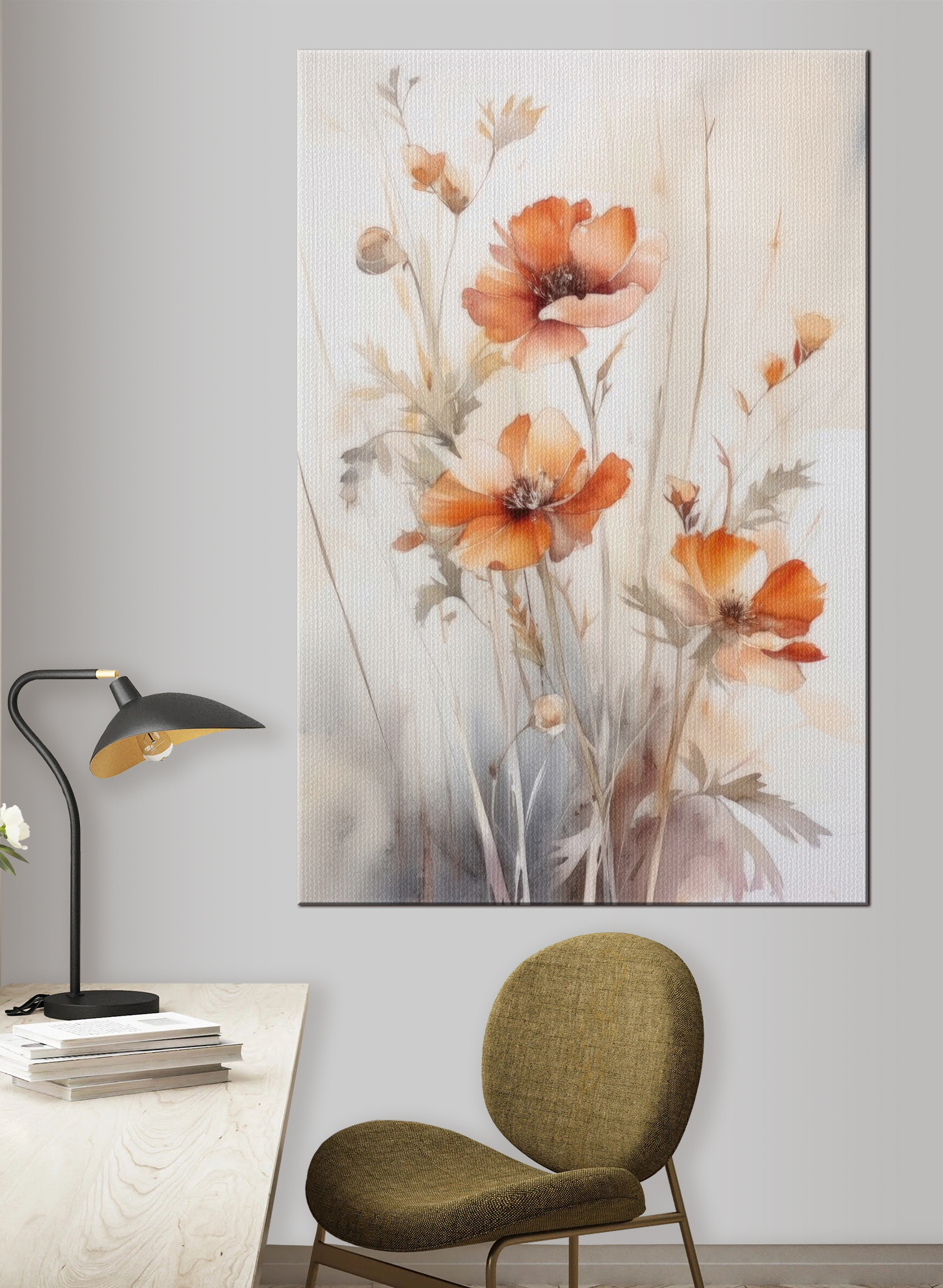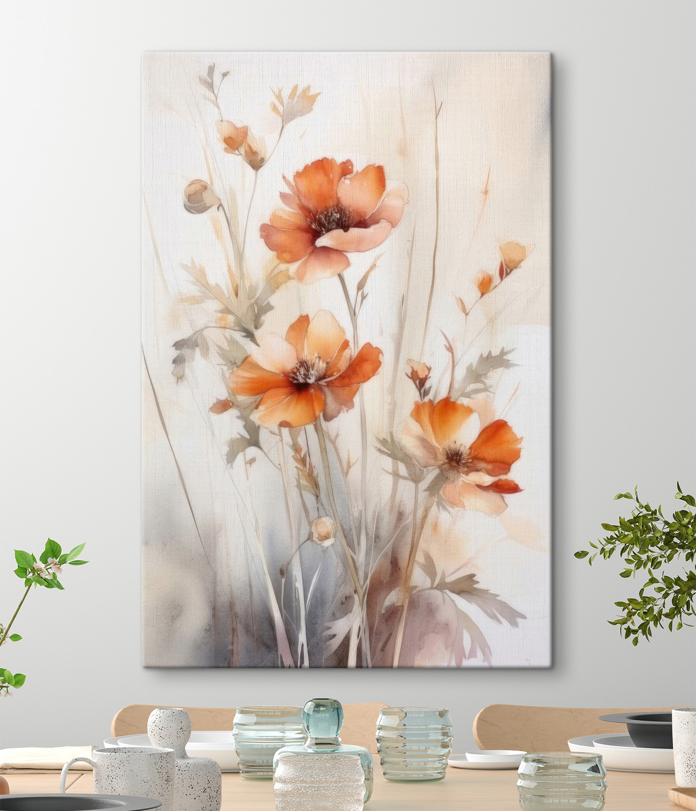 Dieser atemberaubende Leinwanddruck mit zarten orangefarbenen Blumen in voller Blüte verwandelt jeden Raum. Stellen Sie sich vor, Sie betreten einen Raum, in dem die leuchtenden Farben dieser Blüten Freude und Wärme verbreiten – wie ein sonniger Tag, der an Ihrer Wand eingefangen wurde. Der weiche Aquarellstil verleiht dem Bild einen Hauch von Ruhe und macht es perfekt für ein Wohnzimmer oder eine gemütliche Leseecke. Vielleicht verweilen die Besucher ein wenig länger, bewundern die Schönheit und stellen sich die Geschichten hinter jedem Blütenblatt vor. Es ist eine schöne Erinnerung daran, dass die Magie der Natur auch in Innenräumen gedeihen kann. Wer möchte nicht ein bisschen von diesem Charme in seinem Zuhause haben?