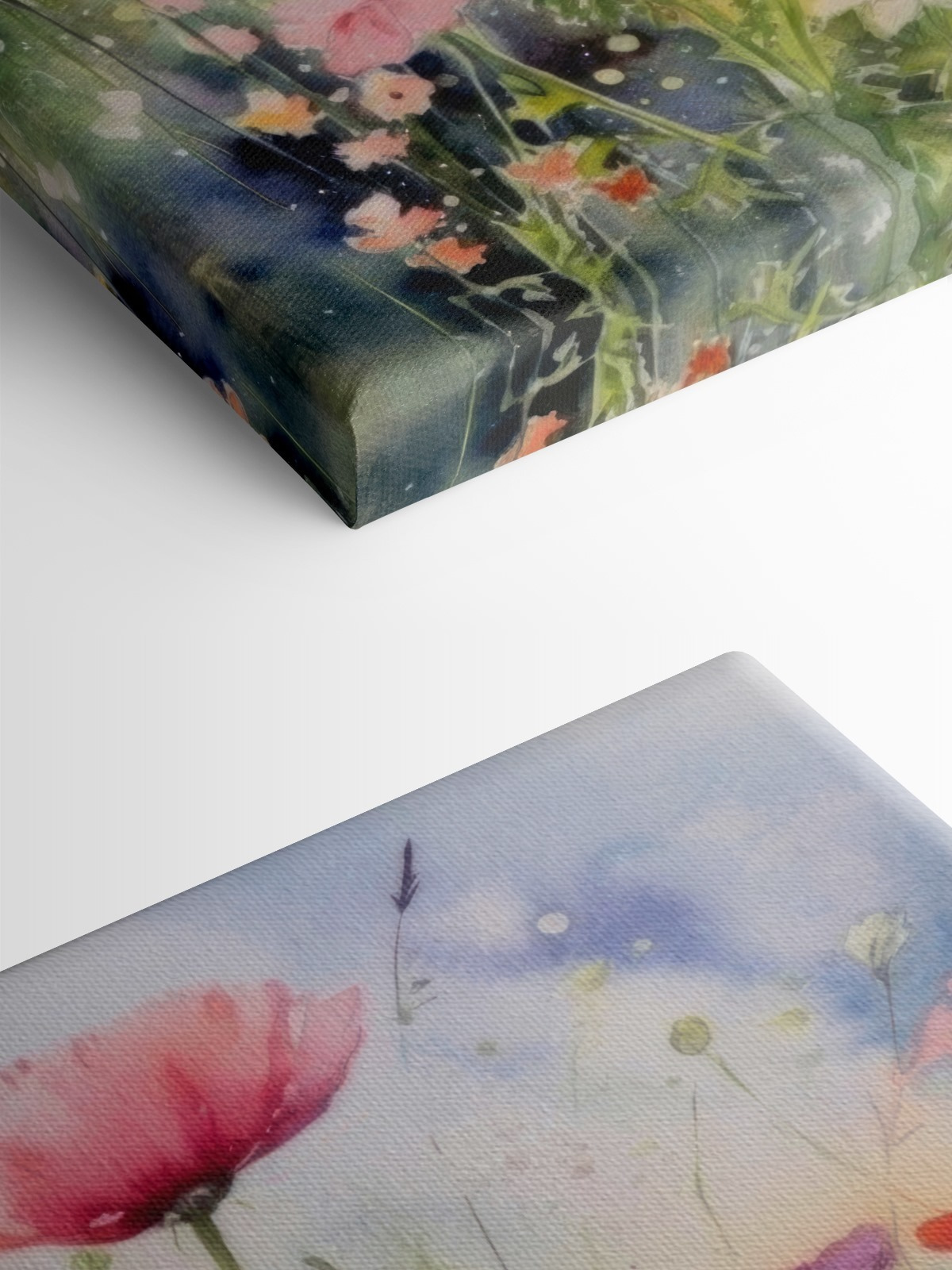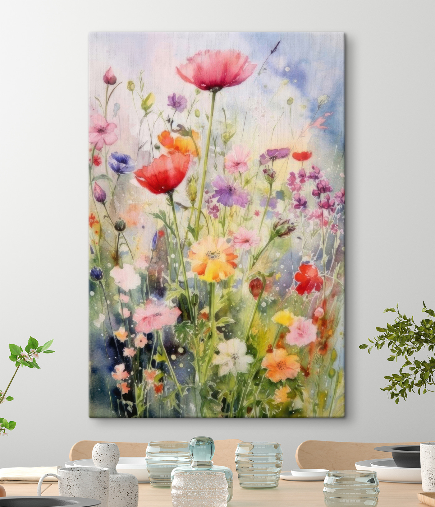 Verschönern Sie Ihren Raum mit diesem atemberaubenden Leinwandbild “Wildblumen in leuchtenden Aquarelltönen”. Es ist wie ein Hauch frischer Luft für Ihre Wände! Die lebendige Farbmischung – Rosa, Lila, Gelb – und die zarten Blütenblätter schreien förmlich nach Frühling, nicht wahr? Perfekt für alle, die von sonnigen Wiesen träumen, sich aber mit dem Stadtsmog abfinden müssen. Jedes Mal, wenn Sie das Bild betrachten, fühlen Sie sich vielleicht wie auf einer Wildblumenwiese, wo eine sanfte Brise den süßen Duft der Blüten trägt. Es ist nicht nur Kunst, es ist eine Flucht. Und stellen Sie sich die Gespräche vor, die sich daraus ergeben werden, wenn Freunde zu Besuch kommen! Ein kleines Stückchen Blumenparadies, direkt an Ihrer Wand.