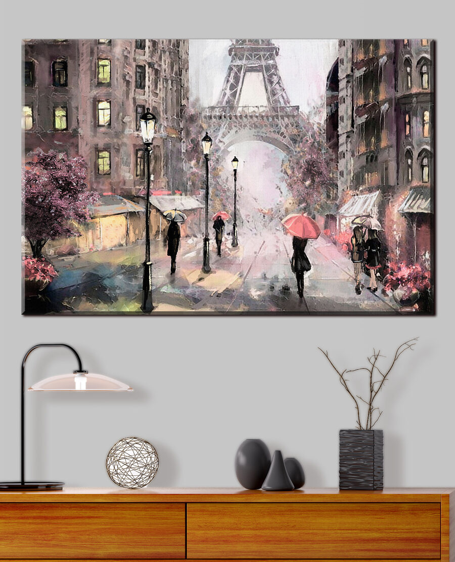 Stellen Sie sich vor, Sie betreten eine bezaubernde Pariser Straße mit glitzernden Lichtern und dem ikonischen Eiffelturm, der durch den Nebel lugt. Dieser Leinwanddruck “Rainy Day in Paris Street Scene” bringt diese verträumte, romantische Stimmung direkt in Ihren Raum. Es ist perfekt für Liebhaber von Stadtbildern und zeigt Menschen, die unter Regenschirmen spazieren gehen, was jedem Raum einen Hauch von Faszination und Gemütlichkeit verleiht. Man kann fast das leise Prasseln des Regens hören und die kühle Pariser Brise spüren! Warm, einladend und ein wenig nostalgisch – eine wunderbare Art, sich in die Stadt der Liebe zu versetzen, egal ob man schon dort war oder nur davon träumt.