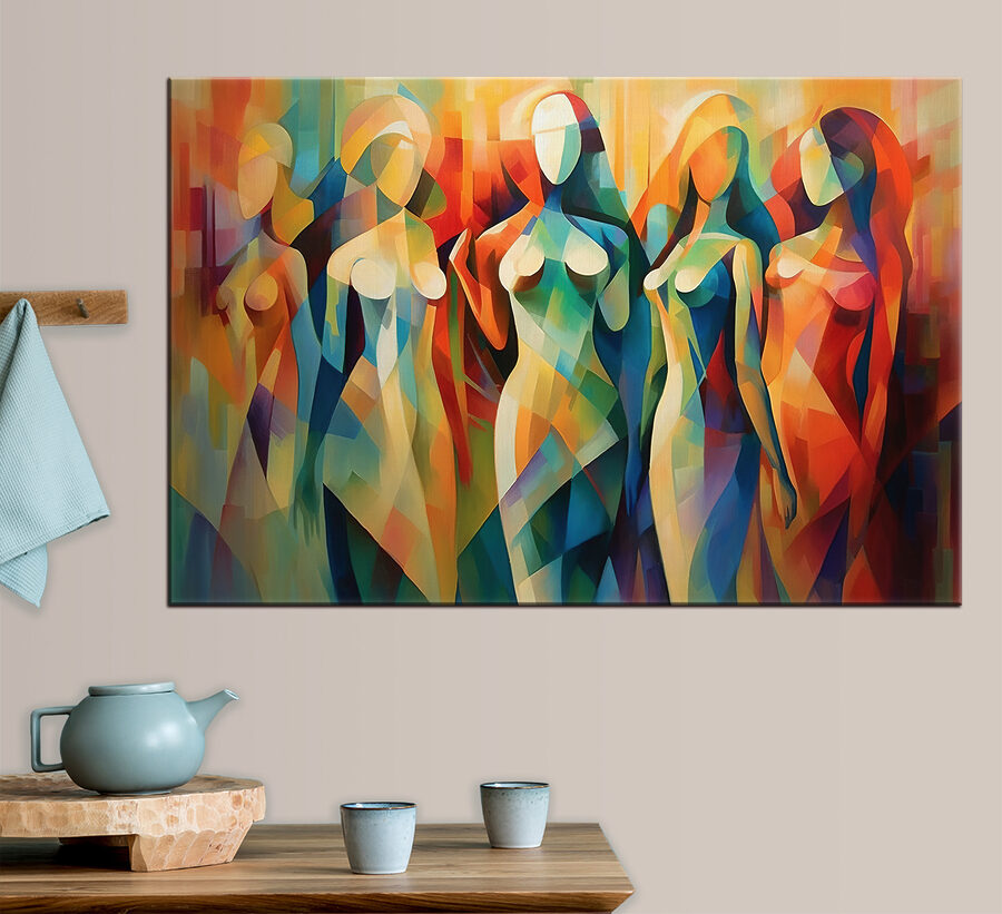 Möchten Sie Ihrem Raum einen Hauch von lebendiger Farbe und Eleganz verleihen? Dieser Leinwanddruck mit dem fesselnden abstrakten Gemälde eines Frauenkörpers ist die perfekte Wahl. Das Farbenspiel aus kräftigen Rottönen, ruhigen Blautönen und warmen Gelbtönen wirkt wie eine visuelle Sinfonie. Stellen Sie sich dieses Bild in Ihrem Wohn- oder Schlafzimmer vor und setzen Sie damit einen Akzent zeitgenössischer Kunst, der mit Sicherheit für Gesprächsstoff sorgen wird. Es ist nicht nur eine Dekoration, es ist wie ein Stück Traum an der Wand. Die Art und Weise, wie die Formen eine anmutige Bewegung erzeugen, hat etwas fast Magisches und lässt Ihren Raum lebendig erscheinen. Ob Sie nun ein erfahrener Kunstliebhaber sind oder einfach nur jemand, der schöne Dinge liebt, dieses Bild wird Sie jedes Mal zum Lächeln bringen, wenn Sie es sehen. Warm, einladend und ein kleiner Blickfang, ist es perfekt für jeden, der die feinen, aber lustigen Dinge des Lebens zu schätzen weiß.