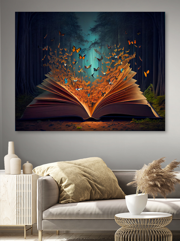Stellen Sie sich das vor: eine gemütliche Ecke in Ihrem Zuhause, in der die Magie von den Wänden ausgeht. Das ist genau das, was dieser Leinwanddruck “Buch mit Schmetterlingen” bietet. Sie haben dieses bezaubernde aufgeschlagene Buch, lebhafte Schmetterlinge, die herausflattern, und das alles vor einem verträumten Waldhintergrund. Im Ernst, jedes Mal, wenn Sie es sehen, ist es, als würden Sie in ein Märchen eintauchen. Ob in Ihrem Wohnzimmer oder in einer ruhigen Leseecke, es lädt zum Staunen und Geschichtenerzählen ein. Und diese satten Farben – sie sind einfach toll! Es ist eine wunderbare, skurrile Flucht, ohne nach draußen zu gehen – wie cool ist das denn?