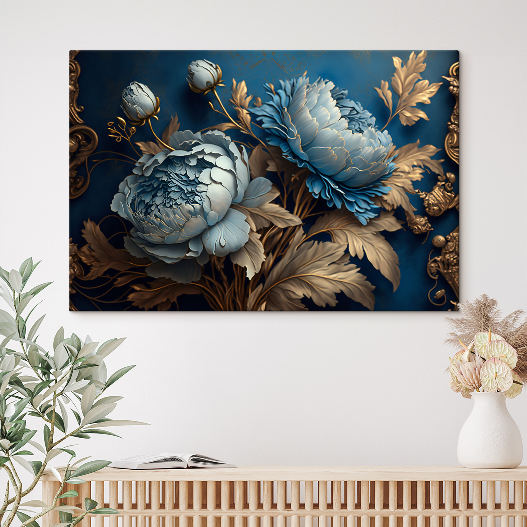 Verschönern Sie jeden Raum mit diesem atemberaubenden Leinwanddruck mit diesen wunderschönen blauen Blüten, die perfekt mit verschnörkelten Details kombiniert sind. Stellen Sie sich vor, Sie betreten einen Raum und spüren die beruhigende Atmosphäre, die diese wunderschönen Blumen ausstrahlen – es ist, als ob Sie sich ein Stückchen Natur nach Hause holen. Ihre Freunde werden Sie fragen, wo Sie so ein einzigartiges Stück gefunden haben. Hängen Sie es im Wohnzimmer oder in Ihrer gemütlichen Leseecke auf, um sofort einen neuen Stil zu bekommen. Es ist nicht nur Dekoration, sondern auch ein Gesprächsanlass und ein Stimmungsaufheller. Wer wünscht sich nicht etwas blumige Fröhlichkeit? Perfekt für alle, die Kunst mit Pfiff zu schätzen wissen!