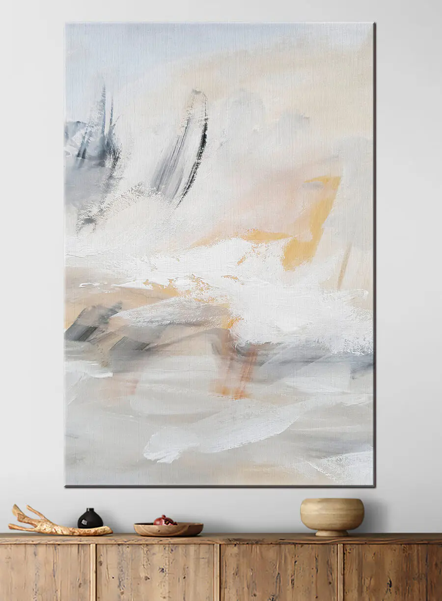 Wenn Sie also auf der Suche nach etwas sind, das eine künstlerische, warme Atmosphäre in Ihre Wohnung bringt, sollten Sie sich dieses “Leinwanddrucke Weiße Oberfläche mit braunen Flecken” ansehen. Es hat etwas Abstraktes an sich, mit weichen Pinselstrichen in Weiß und Andeutungen von Braun und Grau – wie eine verträumte Landschaft, an die man sich nur halb erinnert. Perfekt, um Ihrem Wohn- oder Arbeitszimmer einen Hauch von sanfter Raffinesse zu verleihen. Stellen Sie sich vor, Sie lassen sich in Ihren Lieblingssessel sinken und spüren die Ruhe, die Sie überkommt, während Sie sich in den subtilen Details verlieren. Ideal für die Tage, an denen Sie Ihren Raum ein wenig ruhiger und künstlerischer gestalten möchten.