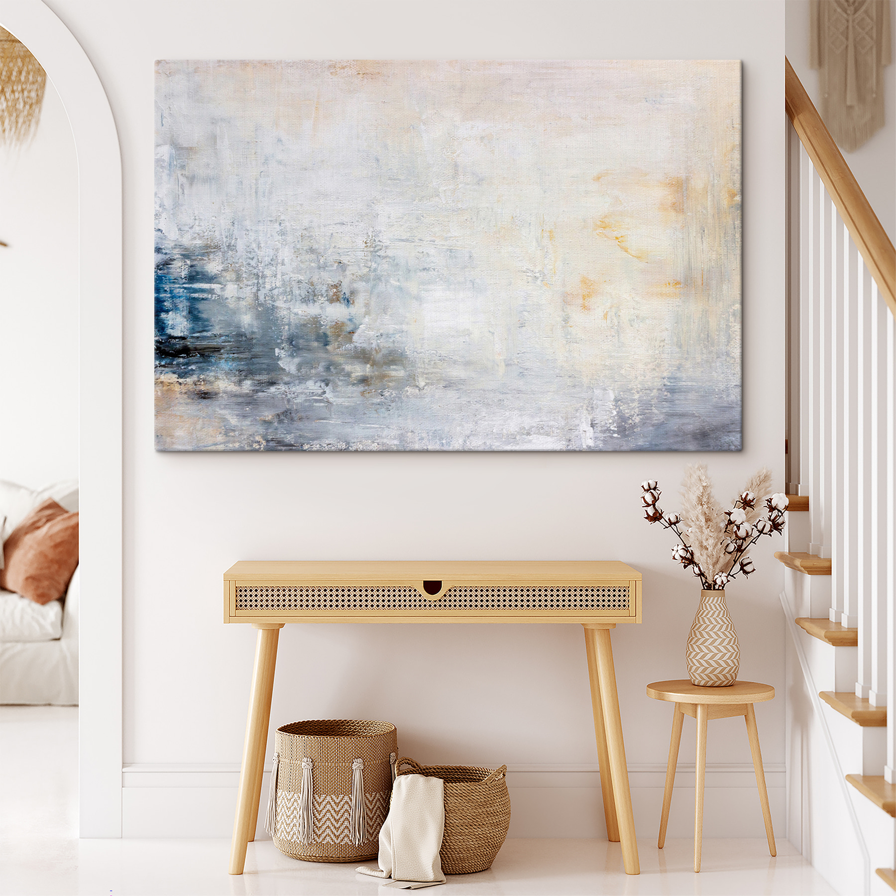 Haben Sie sich jemals beim Anblick der Wellen des Ozeans verloren? Diese Leinwand könnte genau dieses Gefühl einfangen. “Blurry image of a body of water” ist ein Werk, das eine Art träumerische Ruhe in jeden Raum bringt – es ist, als würde man frühmorgens auf ein nebliges Gewässer schauen. Stellen Sie sich vor, dass dieses Bild über Ihrer Couch hängt und einen Hauch von Ruhe in Ihren hektischen Tag bringt. Subtil und doch hypnotisierend findet es einen Weg, zu beruhigen und gleichzeitig zu inspirieren. Perfekt für die Loft-Ästhetik oder um eine banale Wand in etwas Unterhaltsames zu verwandeln. Es ist Kunst, die leise spricht, aber einen bleibenden Eindruck hinterlässt.