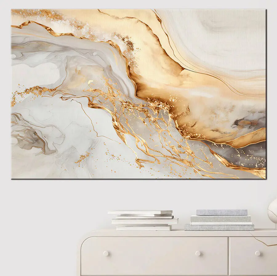 Die Umgestaltung eines Raums muss nicht immer eine komplette Renovierung bedeuten. Hängen Sie einfach diesen atemberaubenden Leinwanddruck auf und es ist, als würde der Raum plötzlich tief durchatmen. Mit seinem eleganten, wirbelnden Marmordesign und den subtilen flüssigen Akzenten zieht es Sie in seinen Bann – perfekt für die Momente, in denen Sie einfach nur in Gedanken versinken oder sich mit Freunden unterhalten möchten. Hängen Sie ihn über eine Couch oder in eine ruhige Ecke und beobachten Sie, wie er die Stimmung verändert. Vielleicht halten die Gäste mitten im Satz inne, weil sie von seiner Schönheit fasziniert sind. Es ist wie ein Gesprächsstarter, der nicht einmal Worte braucht.