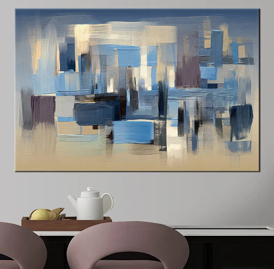 Sehen Sie sich dieses reizvolle Leinwandbild “Abstraktes Stadtbild in gedämpften Tönen” an. Es ist eine fabelhafte Mischung aus kühlen Blautönen und sanften Beigetönen, wie ein städtischer Tagtraum. Sie wissen schon, wenn Sie aus dem Fenster schauen und die Gebäude zu einer wunderschönen, ruhigen Szene verschwimmen. Dieses Stück passt in jeden Raum, in dem Sie sich ein wenig Ruhe wünschen – vielleicht in Ihr Wohnzimmer oder sogar in eine gemütliche Leseecke. Diese gedämpften Töne haben etwas so Beruhigendes, dass sie fast schon Entspannung versprechen. Perfekt, um einen subtilen Hauch von Kunst hinzuzufügen, ohne zu aufdringlich zu sein. Stellen Sie sich vor, Sie kommen nach einem langen Tag nach Hause und verlieren sich in diesen verträumten Pinselstrichen – es ist wie ein Mini-Urlaub an Ihrer Wand! Sie lieben die Kreativität hier? Mir auch.