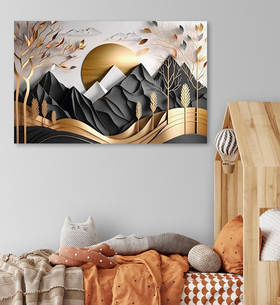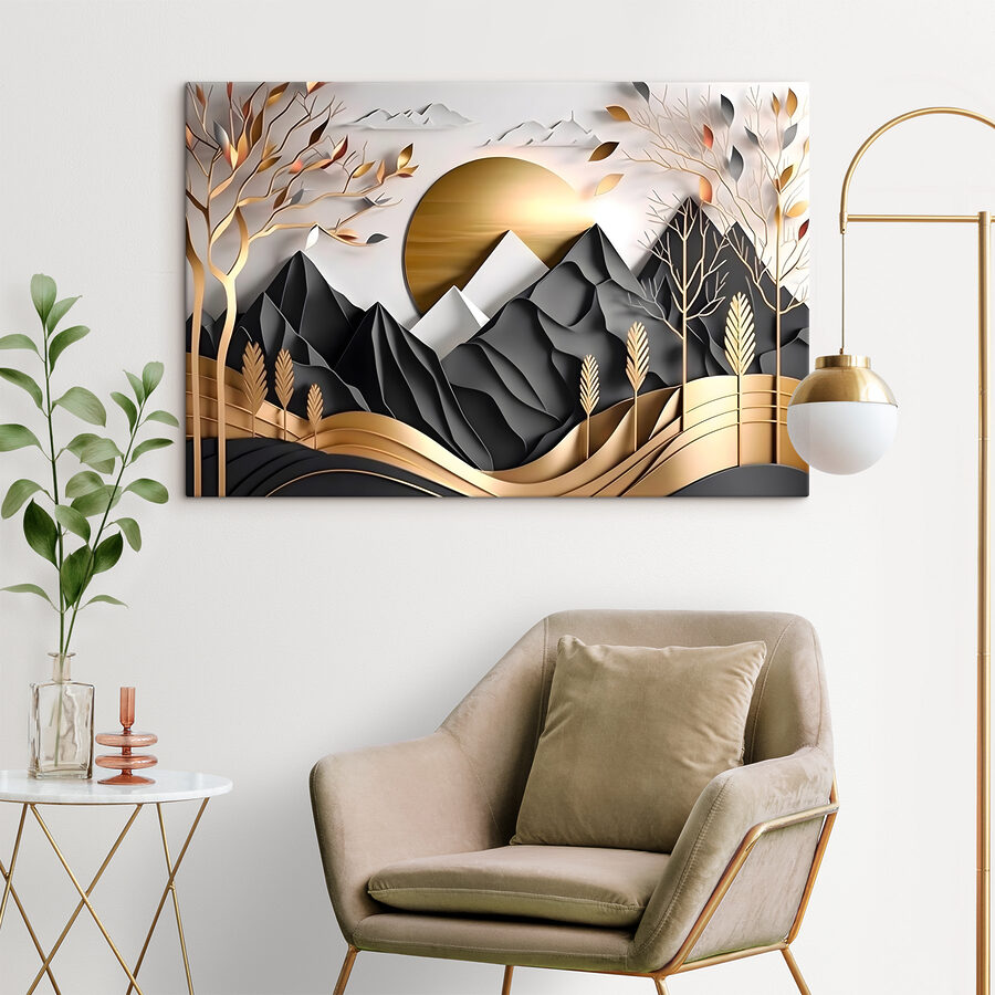 Verwandeln Sie eine leere Wand in einen ruhigen Zufluchtsort mit diesem atemberaubenden Leinwanddruck! Stellen Sie sich vor, Sie kommen nach Hause und sehen eine verträumte Landschaft mit Bergen und Bäumen, die sich wie eine sanfte Umarmung der Natur anfühlt. Die warmen Töne und eleganten Formen sind wie ein sanftes Flüstern des Waldes, das zu Ruhe und Kreativität einlädt. Stellen Sie sich vor, Sie schlürfen Ihren Morgenkaffee, während Sie dieses Kunstwerk betrachten, und fühlen sich ein wenig mehr mit der freien Natur verbunden. Ob im Wohnzimmer oder in der gemütlichen Leseecke, dieses Kunstwerk sorgt für den perfekten Hauch von Ruhe. Es ist mehr als nur Dekoration; es ist eine Erfahrung, die auf Sie wartet!
