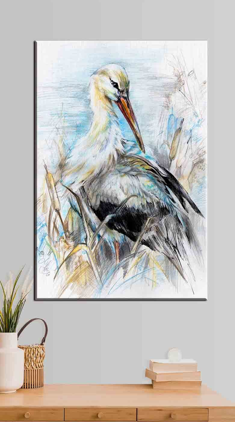 Bringen Sie einen Hauch von Natur in jeden Raum mit diesem bezaubernden Leinwanddruck, der einen wunderschön illustrierten Vogel zeigt. Können Sie sich vorstellen, wie er über einer gemütlichen Leseecke thront? Die sanften Farben und zarten Linien vermitteln ein Gefühl der Gelassenheit, wie eine leichte Brise an einem warmen Tag. Es eignet sich perfekt, um Gespräche anzuregen oder einfach ein wenig Flair an Ihre Wand zu bringen. Dieses Kunstwerk strahlt Ruhe aus und lädt zur Bewunderung ein, was es zu einer idealen Ergänzung für alle macht, die Eleganz schätzen, ohne zu spießig zu sein. Jeder Blick wird Sie an die Schönheit der Natur erinnern – als hätten Sie ein kleines Stück Natur zu Hause.