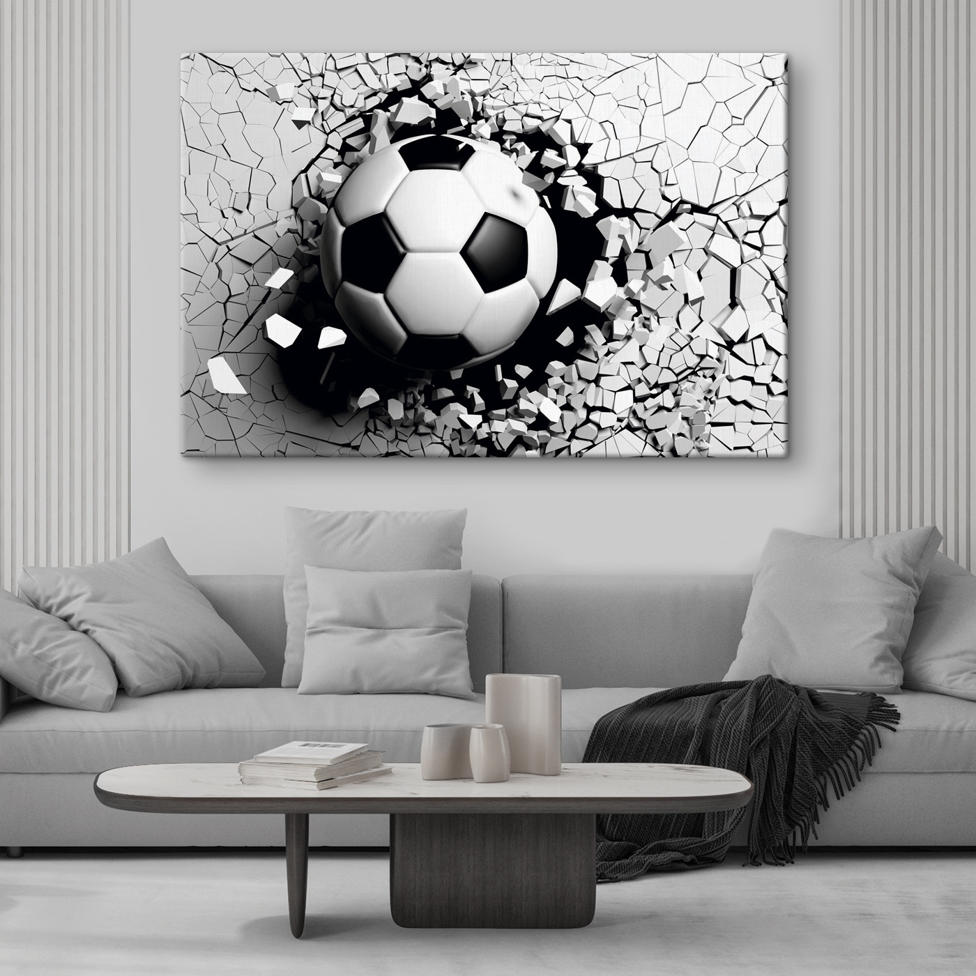 Stellen Sie sich also Folgendes vor: Du betrittst einen Raum, und bumm! Dieser epische schwarz-weiße Leinwanddruck trifft dich mit einem Fußball, der durch eine Wand bricht. Ganz schön gewagt, oder? Es fühlt sich an, als würde das Spiel direkt in Ihr Wohnzimmer überschwappen – und verwandelt jeden Raum sofort in ein dramatisches Statement. Perfekt für alle, die Fußball atmen! Es könnte das Herzstück Ihres Spielzimmers sein, das Ihnen das Gefühl gibt, der Champion zu sein, oder ein auffälliges Element im Büro, das für Gesprächsstoff sorgt. Es verleiht eine kantige, dynamische Ausstrahlung, die einfach sagt: “Ich bin bereit für Action”. Seien wir ehrlich, selbst Ihr fußballscheuester Kumpel wird zugeben müssen, dass er verdammt cool ist.