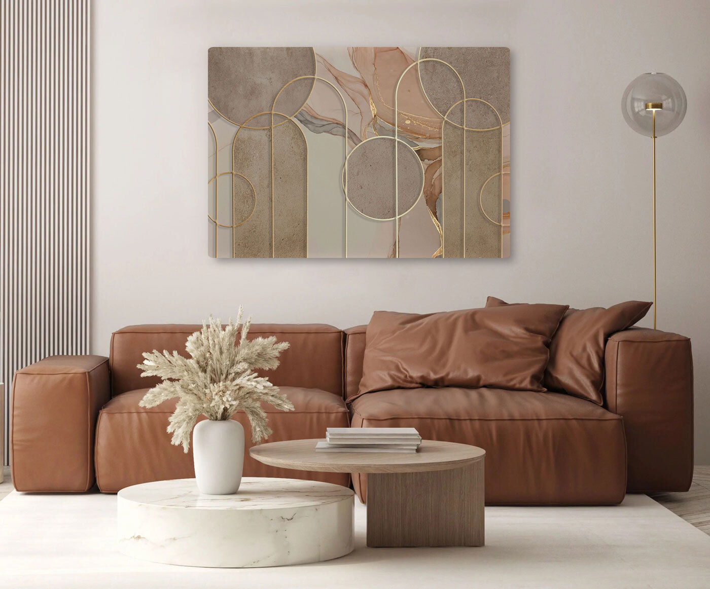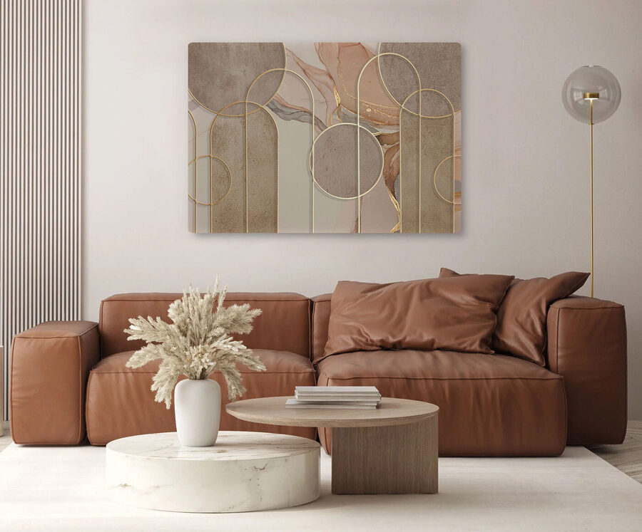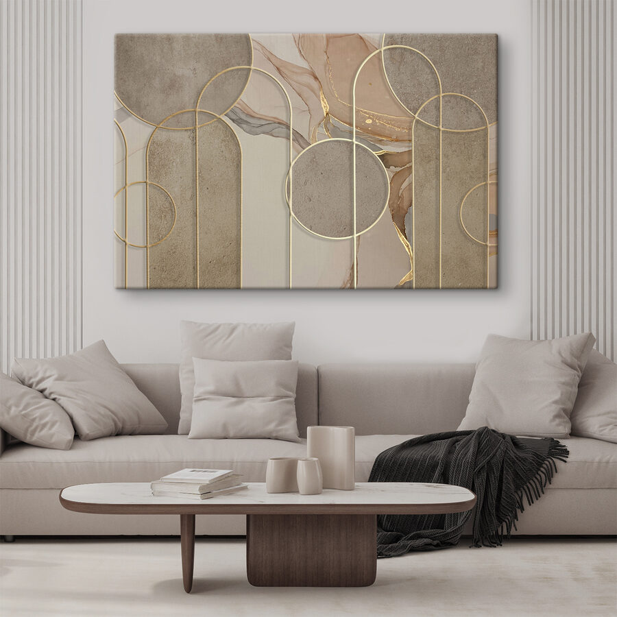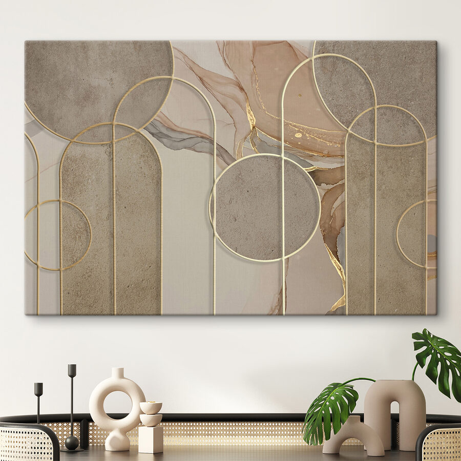 Möchten Sie Ihr Wohnzimmer oder Ihr Büro aufpeppen? Sehen Sie sich diesen Leinwanddruck mit einem abstrakten geometrischen Muster mit Kreisen an. Es ist wie ein Puzzle für Ihre Augen! Ruhige, beruhigende Farben verschmelzen miteinander und bringen einen Hauch von moderner Eleganz in jeden Raum. Perfekt für jene Nachmittage, an denen Sie einen ruhigen Moment brauchen – starren Sie einfach in das Labyrinth und lassen Sie Ihre Gedanken schweifen. Es strahlt Gemütlichkeit und Wohnlichkeit aus, ohne sich zu sehr anzustrengen, wie ein geliebtes Buch. Auch ein toller Gesprächsanlass!