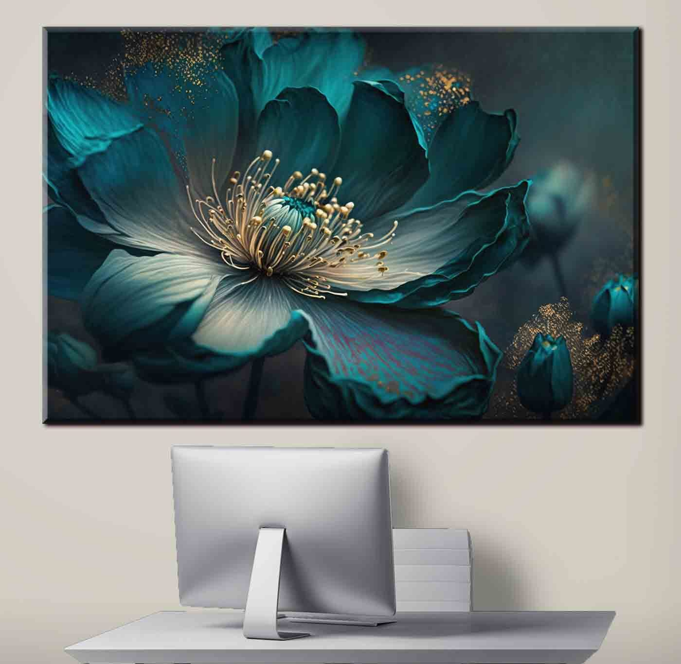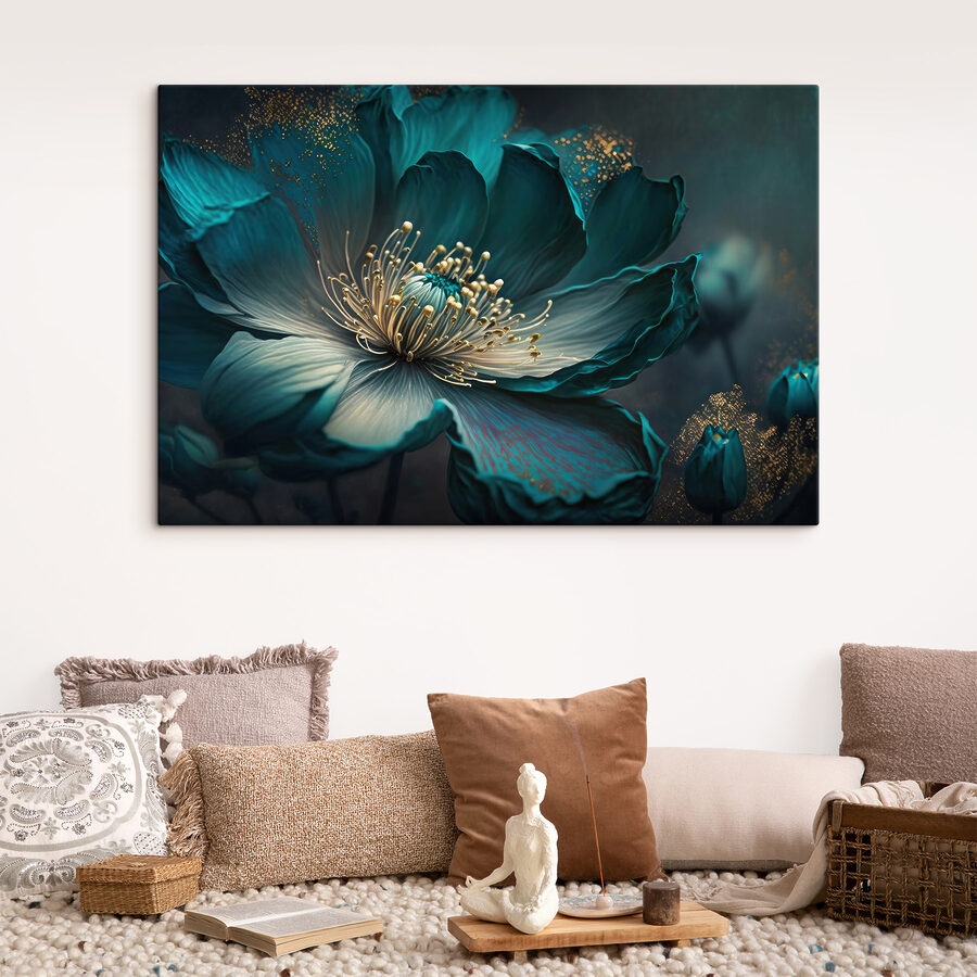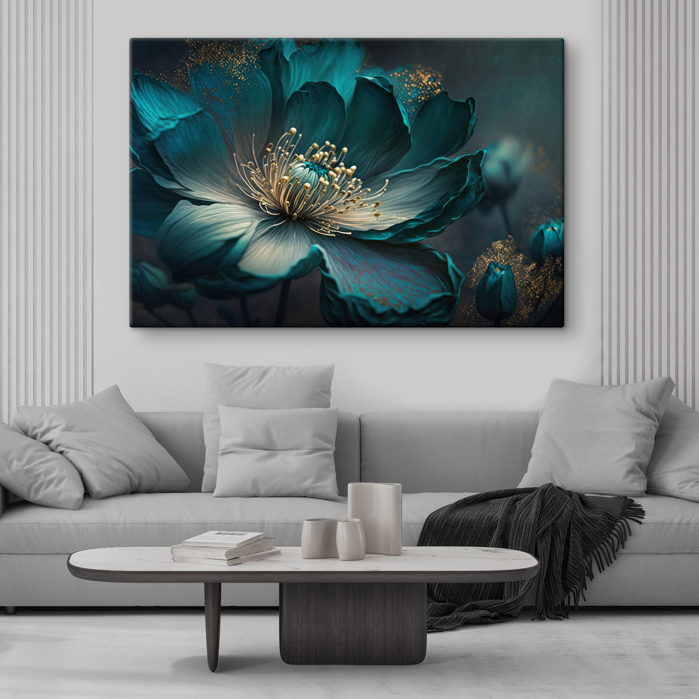 Dieser tealfarbene Blumen-Leinwanddruck ist ein echter Hingucker. Schauen Sie sich nur an, wie die Blütenblätter mit den leuchtenden Akzenten leuchten – es ist, als würde die Blume einen Hauch von Magie direkt an Ihre Wand streuen. Perfekt, um jedem Raum einen Hauch von Eleganz und einen Spritzer verträumter Farbe zu verleihen. Stellen Sie sich die Blume über Ihrer Couch oder als Mittelpunkt Ihres Schlafzimmers vor – was für eine Stimmung! Irgendetwas an diesen satten Teal-Tönen zieht einen einfach an und lässt alles ein wenig ruhiger erscheinen, nicht wahr? Außerdem ist es in der Kategorie “Blumen-Leinwandbilder” zu finden, also wissen Sie, dass es ein großer Hit ist.