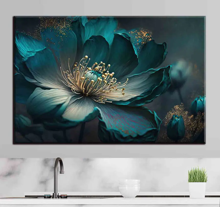 Dieser tealfarbene Blumen-Leinwanddruck ist ein echter Hingucker. Schauen Sie sich nur an, wie die Blütenblätter mit den leuchtenden Akzenten leuchten – es ist, als würde die Blume einen Hauch von Magie direkt an Ihre Wand streuen. Perfekt, um jedem Raum einen Hauch von Eleganz und einen Spritzer verträumter Farbe zu verleihen. Stellen Sie sich die Blume über Ihrer Couch oder als Mittelpunkt Ihres Schlafzimmers vor – was für eine Stimmung! Irgendetwas an diesen satten Teal-Tönen zieht einen einfach an und lässt alles ein wenig ruhiger erscheinen, nicht wahr? Außerdem ist es in der Kategorie “Blumen-Leinwandbilder” zu finden, also wissen Sie, dass es ein großer Hit ist.