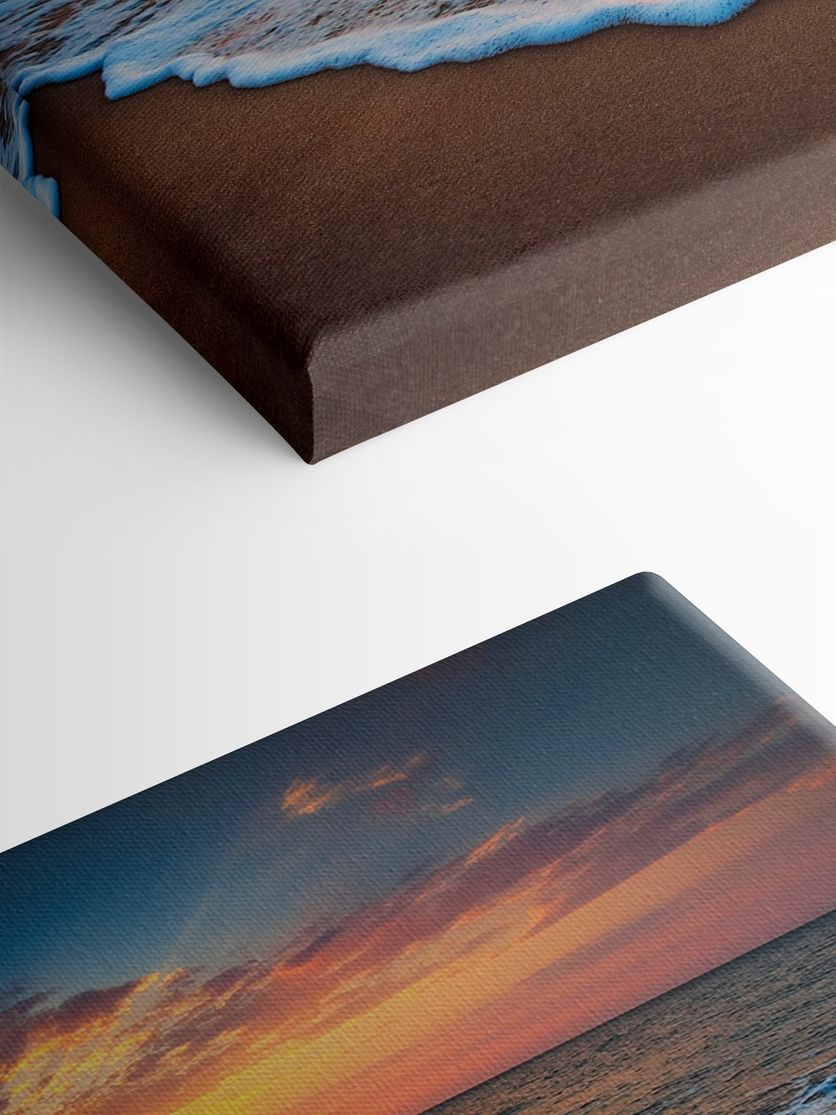 Stellen Sie sich vor, Sie betrachten diesen atemberaubenden Leinwanddruck “Sunset Waves Embrace the Shore” – es ist, als könnten Sie das beruhigende Rauschen der Wellen hören und den warmen Sand unter Ihren Füßen spüren. Dieses Kunstwerk ist eine perfekte Mischung aus lebendigen Farben und beruhigender Ausstrahlung. Ganz gleich, ob Sie Ihr Wohnzimmer verschönern wollen oder etwas suchen, das Ihren Arbeitsbereich weniger wie… Arbeit aussehen lässt, dieser Druck ist genau das Richtige für Sie. Stellen Sie sich gemütliche Strandabende vor, an denen der Sonnenuntergang den Himmel in Orange und Rosa färbt und der Ozean Sie mit einer großen, schäumenden Umarmung umarmt. Ideal für alle, die sich nach einem Stück Meer und Strandfrieden zu Hause sehnen. Warum holen Sie sich also nicht einen Hauch von Küstenruhe ins Haus mit diesem beliebten Meer- und Strandbild?