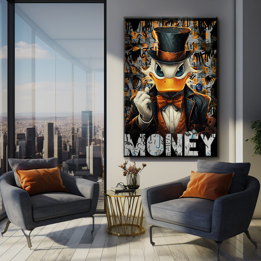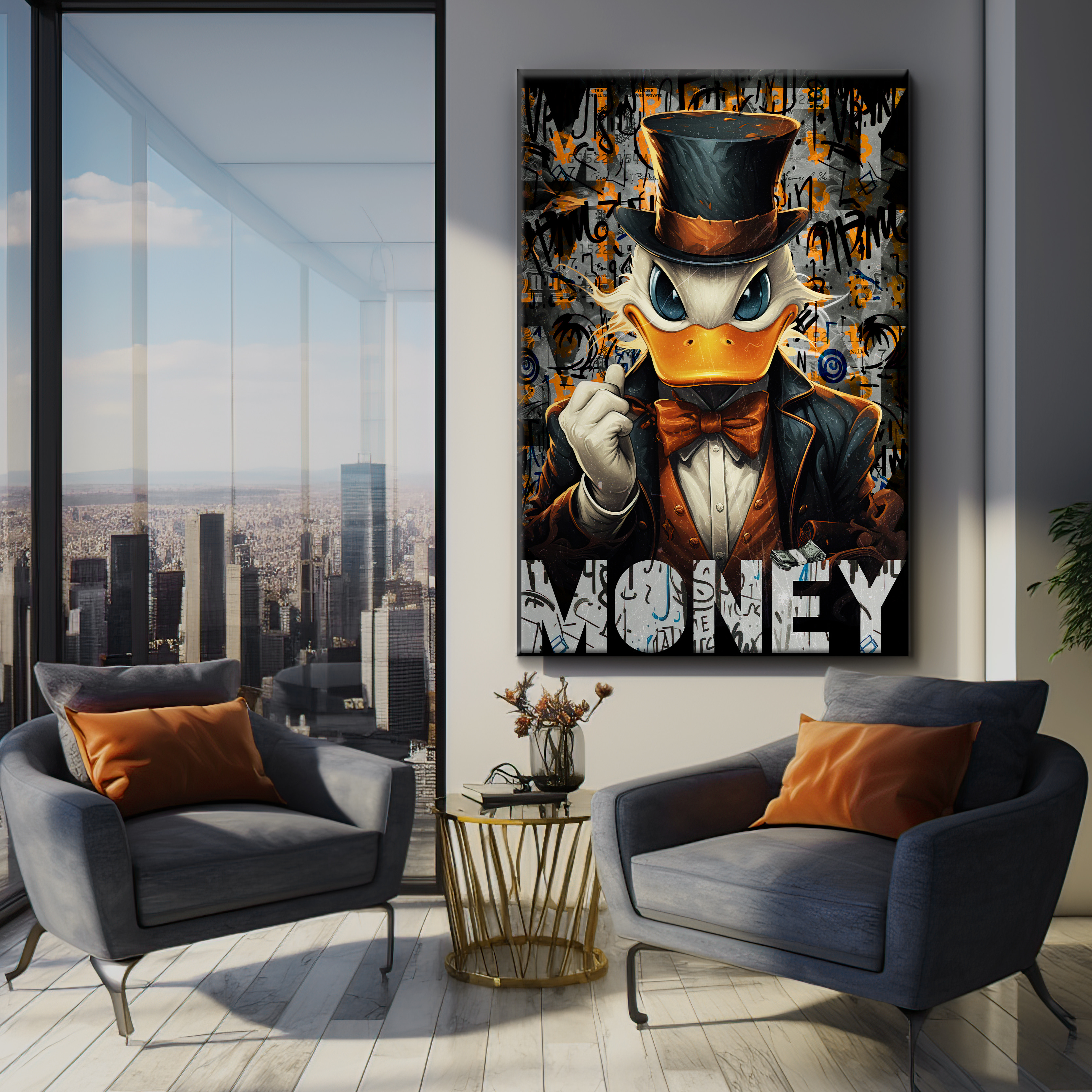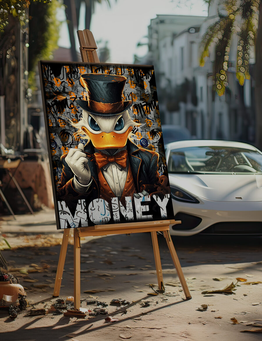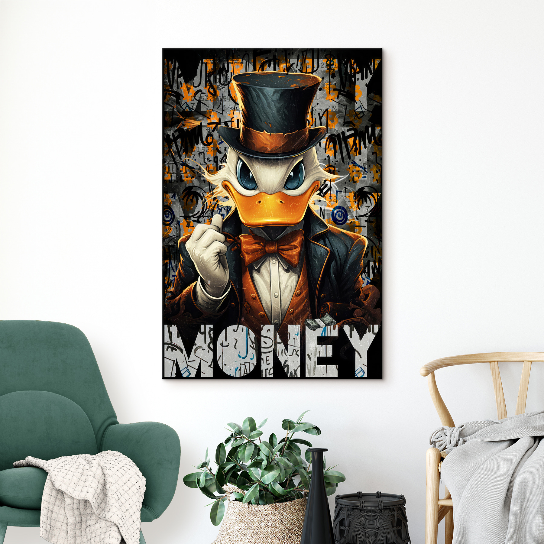 Haben Sie sich jemals gewünscht, dass ein Kunstwerk sprechen könnte? Diese lebendige Leinwand mit einer adretten Cartoon-Ente in elegantem Zylinder und Smoking schreit förmlich nach Persönlichkeit. Es ist, als hätten Ihre Wände gerade einen Motivationscoach eingestellt, aber viel cooler. Perfekt für Tierliebhaber oder alle, die einen temperamentvollen Impuls für ihren Raum brauchen. Können Sie sich vorstellen, einen schlechten Tag zu haben, wenn Sie seinen zuversichtlichen Blick betrachten? Jedes Mal, wenn Sie an ihm vorbeigehen, werden Sie sofort einen Energieschub verspüren – und vielleicht auch einen Hauch von Fröhlichkeit. Glauben Sie mir, Ihr Dekorationsspiel hat gerade eine neue Dimension erreicht.