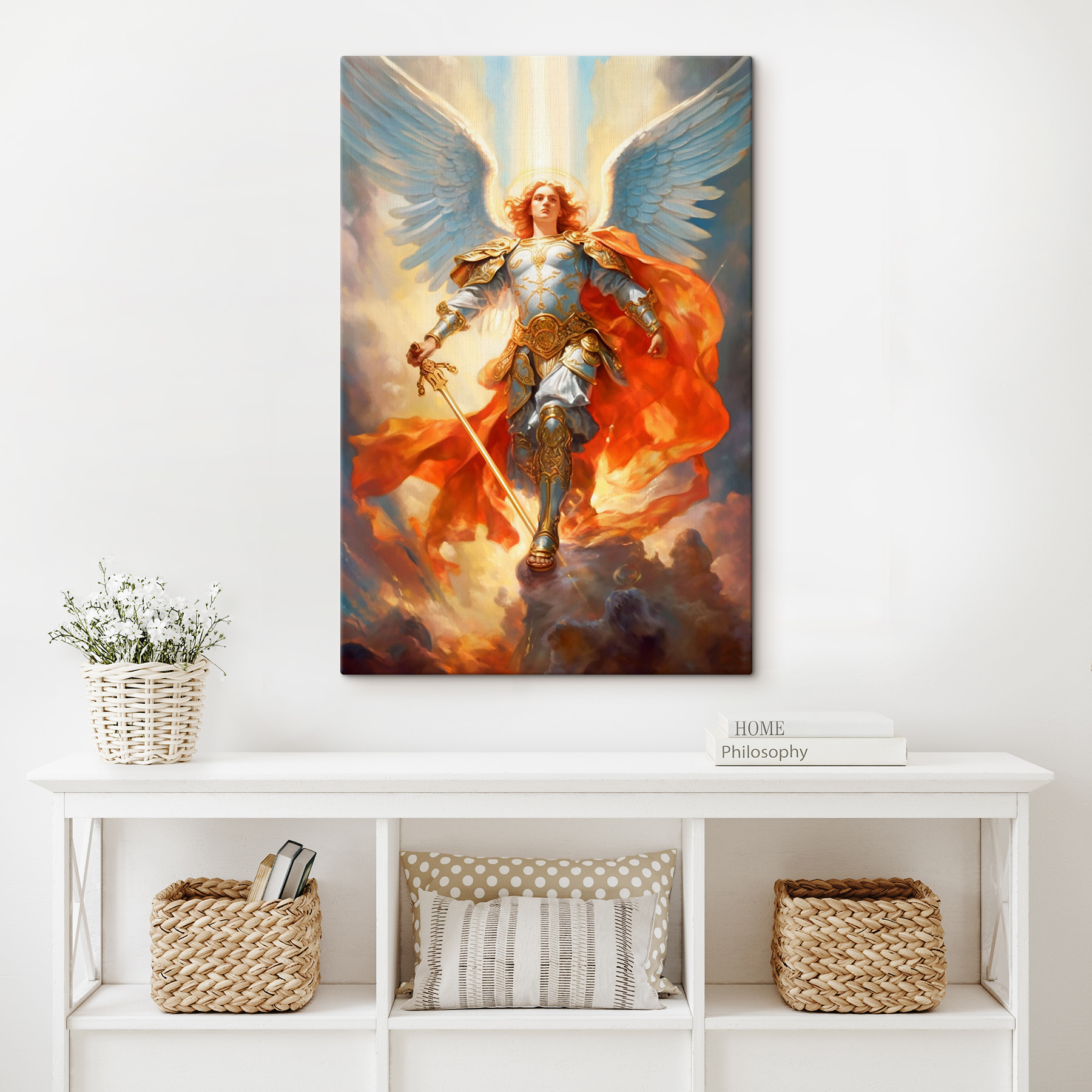 Stellen Sie sich vor, Sie kommen nach Hause und sehen diese beeindruckende Leinwand an Ihrer Wand hängen – ein Gemälde mit einer Person in Rüstung, mit Flügeln und einem Schwert. Es ist wie eine Szene aus einem epischen Fantasy-Roman! Dieses Bild verleiht jedem Raum einen Hauch von Erhabenheit und Ehrfurcht und lässt ihn wie einen heiligen Raum erscheinen. Und diese Farben? Sie sind so lebhaft und dynamisch, dass sie fast aus der Leinwand herausspringen und ihre eigene Geschichte erzählen.