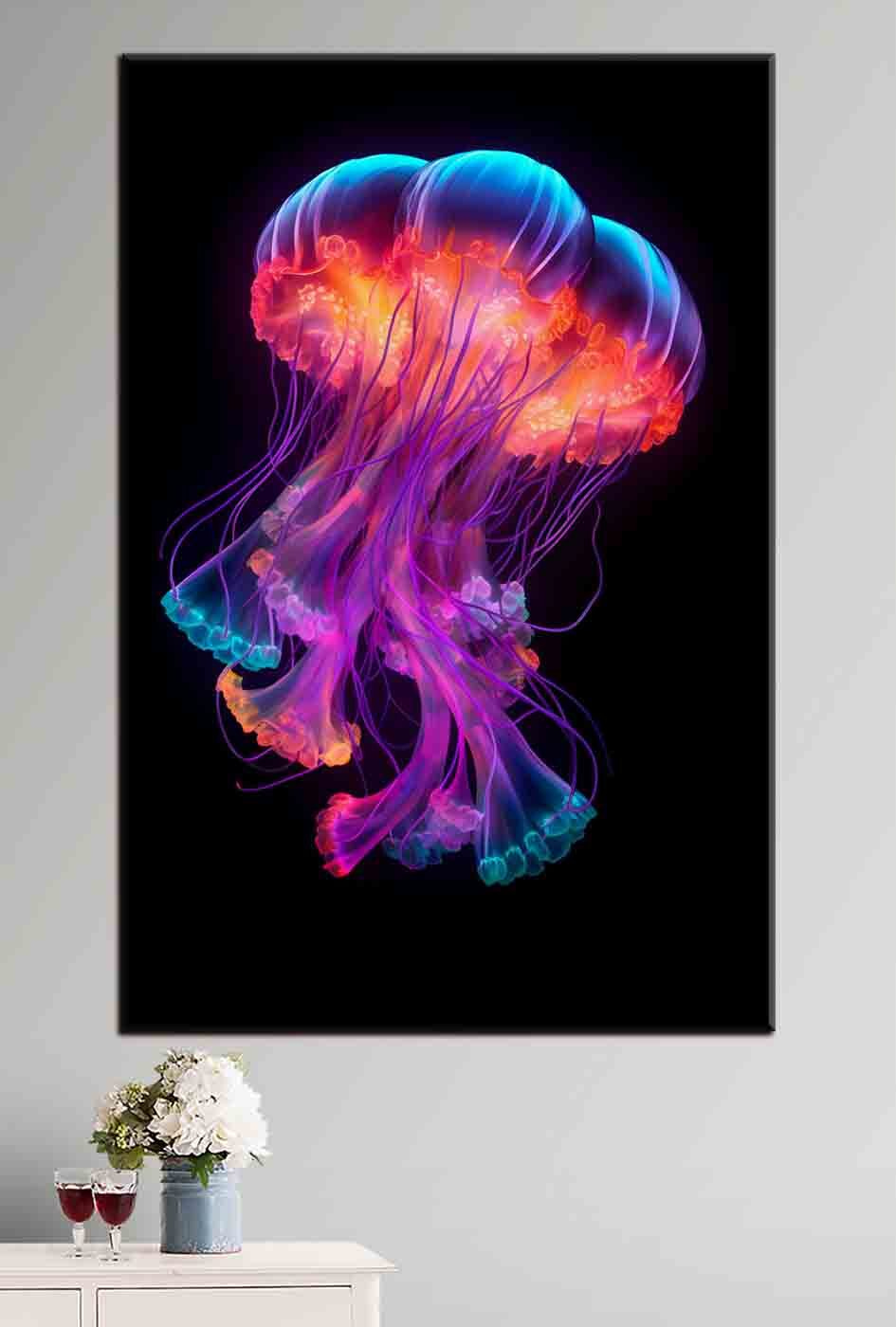 Sehen Sie sich diesen atemberaubenden Leinwanddruck mit dem Titel “Neon-Qualle gleitet durch die Dunkelheit” an. Können Sie sich nicht vorstellen, wie sie in einem ansonsten düsteren Raum leuchtet? Bei diesem Werk hat man das Gefühl, in die Tiefen des Ozeans einzutauchen, ohne die Couch zu verlassen. Die leuchtenden Neonfarben vor einem pechschwarzen Hintergrund sind etwas ganz Besonderes – es ist, als würden die Quallen direkt von der Leinwand schweben. Perfekt für alle Orte, die etwas Aufsehen erregen sollen, sei es das Wohnzimmer, das Büro zu Hause oder sogar ein trendiges Café. Sie haben einen Raum, der etwas Besonderes braucht? Das ist er.