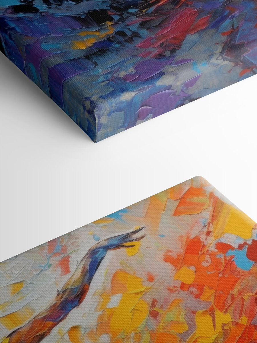 Dieser bezaubernde Leinwanddruck einer tanzenden Frau, verewigt in einem Strudel aus leuchtenden Farben, bringt jeden Raum zum Strahlen. Es sieht aus, als wäre sie in einem Moment purer Freude gefangen und lädt jeden, der sie ansieht, ein, mitzufeiern. Stellen Sie sich vor, dieses Bild in einem Wohnzimmer oder Atelier aufzuhängen – plötzlich fühlen sich die Wände lebendig an. Ihre fließenden Bewegungen können die Kreativität anregen oder einfach die Stimmung heben. Es ist die perfekte Erinnerung daran, den Rhythmus des Lebens anzunehmen. Egal, ob Sie Kaffee trinken oder Freunde einladen, dieses Kunstwerk verleiht jedem Moment einen Hauch von Energie.