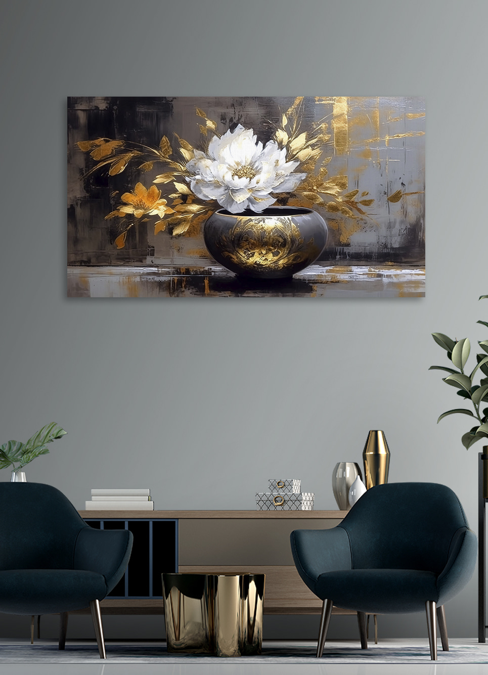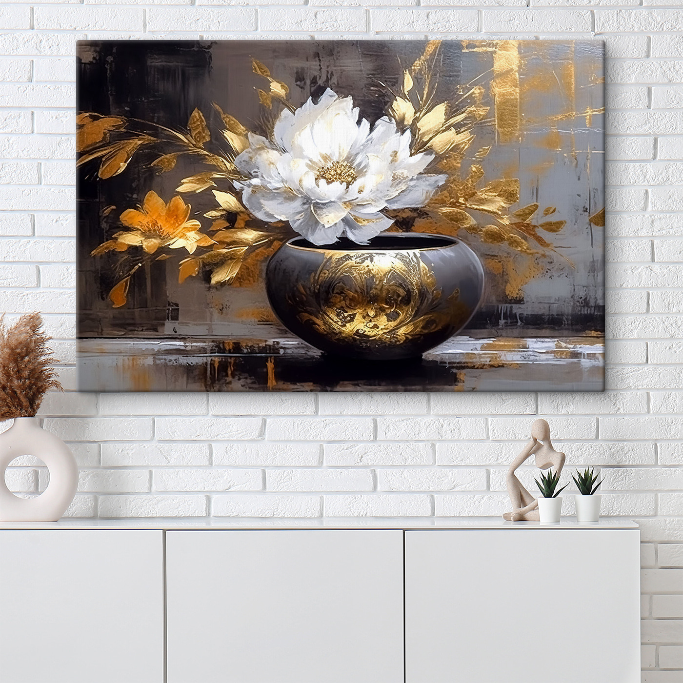 Verleihen Sie jedem Raum einen Hauch von Eleganz mit diesem Leinwanddruck von Blüten in einer charmanten Vase. Die Aquarellmalerei bringt einen Farbakzent, der selbst die trübsten Tage aufhellen kann. Stellen Sie sich vor, es hängt in Ihrem Wohnzimmer, wo es die Blicke Ihrer Freunde auf sich zieht und zu Gesprächen darüber anregt, wie schön es ist. Die sanften Farbtöne tanzen miteinander und schaffen eine beruhigende Atmosphäre. Perfekt für jeden, der Blumen liebt, aber vielleicht keinen grünen Daumen hat. So einfach können Sie Ihrem Raum Charme verleihen, ohne sich um die Bewässerung kümmern zu müssen!