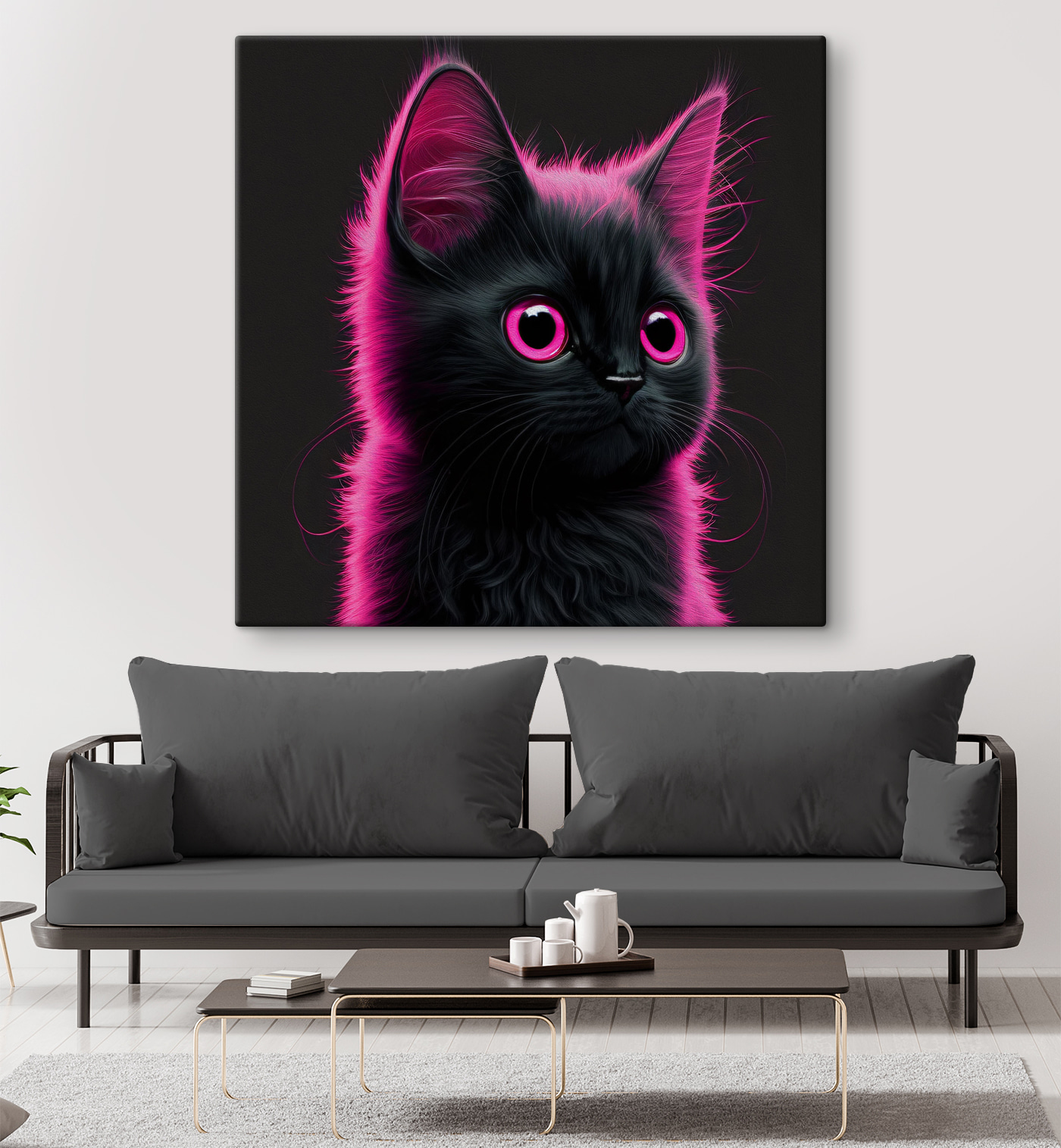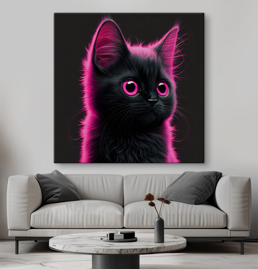 Möchten Sie Ihrem Raum einen Hauch von skurrilem Charme verleihen? Hier ist der Leinwanddruck “Schwarze Katze mit rosa Haaren”! Dieses bezaubernde Bild sieht nicht nur gut aus, sondern sorgt auch für Gesprächsstoff. Stellen Sie sich vor, wie diese freche schwarze Katze mit einem Hauch von Rosa Ihre Wand schmückt und jedem Raum einen Hauch von Laune und Geheimnis verleiht. Mit ihren leuchtenden Farben und den verschmitzten Augen ist sie sowohl für Katzenliebhaber als auch für Kunstinteressierte ein echter Hingucker. Stellen Sie es in Ihr Wohnzimmer oder Ihren Flur und beobachten Sie, wie es die Atmosphäre verändert. Wer hätte gedacht, dass eine Katze so modebewusst sein kann?
