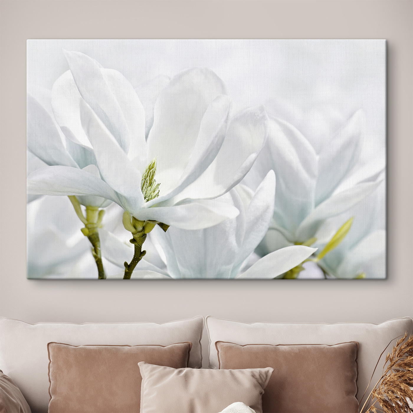 Ist das nicht einfach traumhaft? Der Leinwanddruck “Weiße Magnolienblüten im Frühling” ist wie ein Hauch von frischem Wind für Ihre Wände. Stellen Sie sich vor, Sie wachen jeden Morgen auf und sehen diese zarten weißen Blütenblätter – es ist wie ein kleines Stückchen Frühling direkt bei Ihnen zu Hause. Perfekt für jeden Raum, der einen sanften, eleganten Touch braucht. Die Details sind einfach göttlich – vielleicht ertappt man sich dabei, dass man ein bisschen länger starrt als sonst. Ob für Ihr Wohnzimmer, Ihr Schlafzimmer oder die leere Wand, mit der Sie nie etwas anzufangen wissen, diese florale Schönheit ist genau das Richtige für Sie. Sie verleiht einen Hauch von Gelassenheit und einen Hauch von Raffinesse. Im Ernst, es ist fast so, als ob man die Blüten riechen könnte!