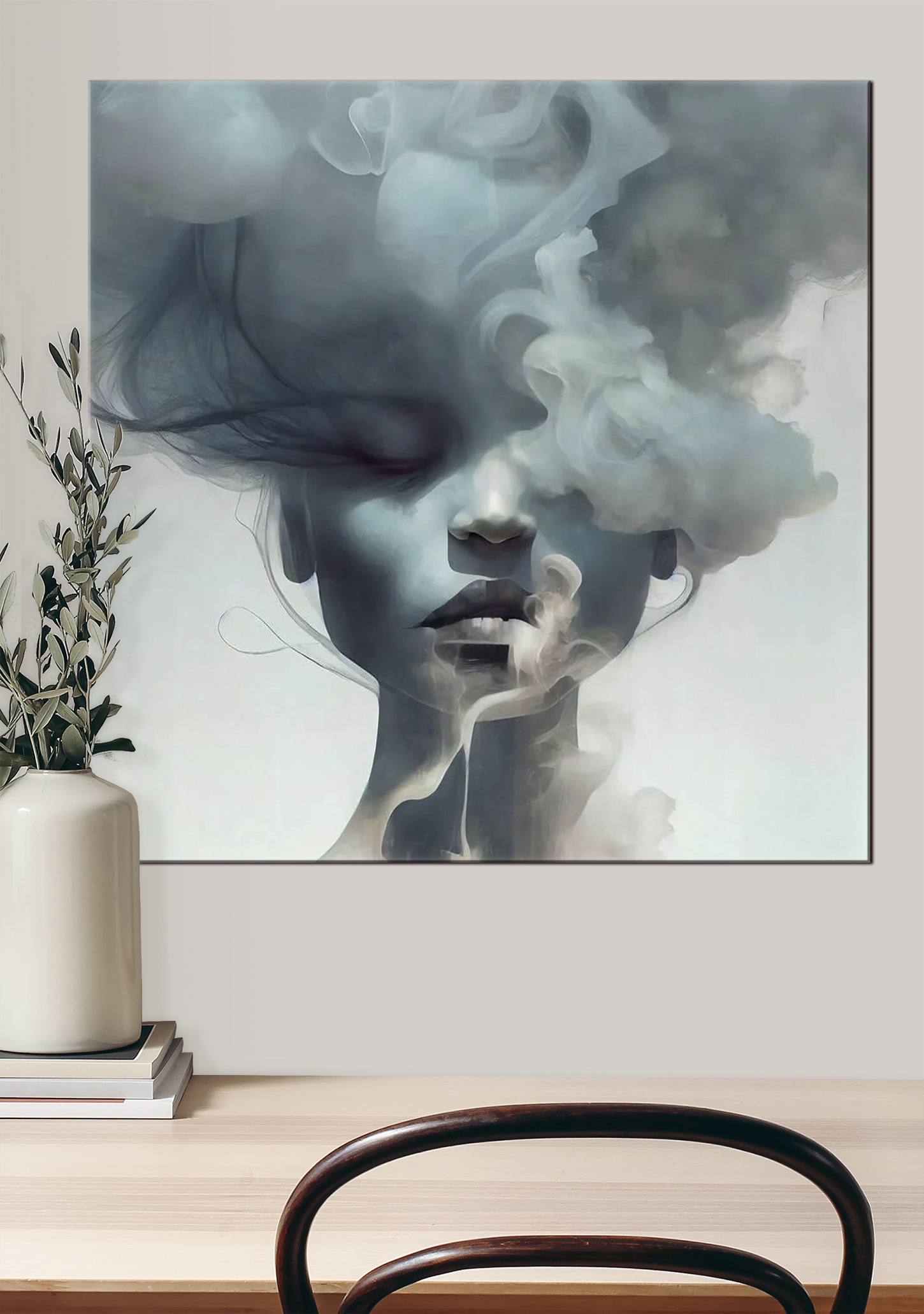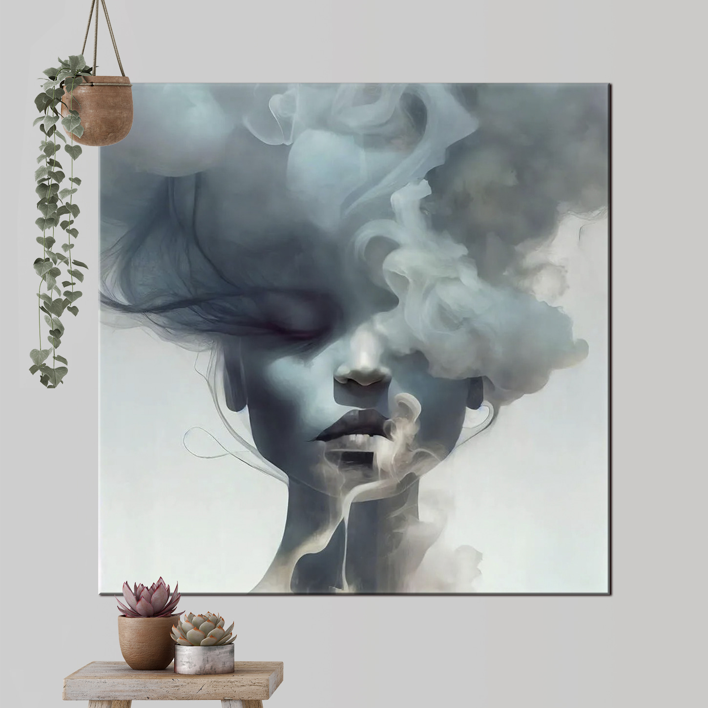 Haben Sie sich jemals gefragt, wie sich ein Geheimnis anfühlt? Nun, dieser Leinwanddruck “Mysteriöses Gesicht in Rauch gehüllt” fängt es perfekt ein. Stellen Sie sich dieses Kunstwerk in Ihrem Wohnzimmer oder vielleicht sogar in Ihrem Schlafzimmer vor. Das in Rauch gehüllte Gesicht hat diese verträumte, fast geisterhafte Qualität – jedes Mal, wenn Sie es betrachten, ist es, als würden Sie in eine neblige Traumwelt eintreten. Man kann nicht anders, als sich in den Rauchschwaden zu verlieren und zu versuchen, die Geschichte hinter dem Gesicht zu enträtseln. Vielleicht ist es ein bisschen unheimlich, aber auf eine gute Art und Weise – wie ein spannender Film, der einen in Atem hält. Perfekt für alle, die ein wenig Intrige in ihrer Einrichtung lieben!