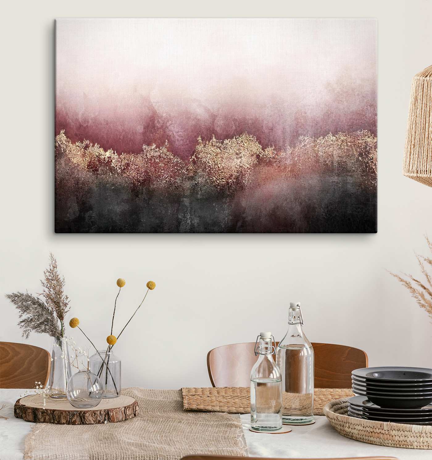 Verwandeln Sie Ihren Raum mit diesem atemberaubenden abstrakten Landschaftsbild auf Leinwand. Stellen Sie sich vor, Sie treten in ein traumhaftes Reich ein, in dem sanfte Farbtöne nahtlos ineinander übergehen und zu Ruhe und Kreativität einladen. Es ist, als würde man an einem faulen Sonntag den Sonnenuntergang genießen und sich von dieser gemütlichen Stimmung anstecken lassen. Perfekt für jedes Loft oder jede trendige Ecke, regt es zu Gesprächen und Komplimenten gleichermaßen an. Freunde werden vielleicht innehalten, ein wenig verzaubert sein und sich fragen, ob sie sich in diesen Schichten verlieren könnten. Hängen Sie es auf und beobachten Sie, wie es jeder Wand Leben einhaucht – im Ernst, es ist wie Magie für Ihre Einrichtung.